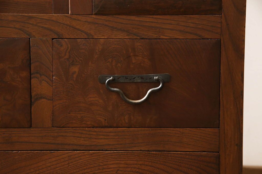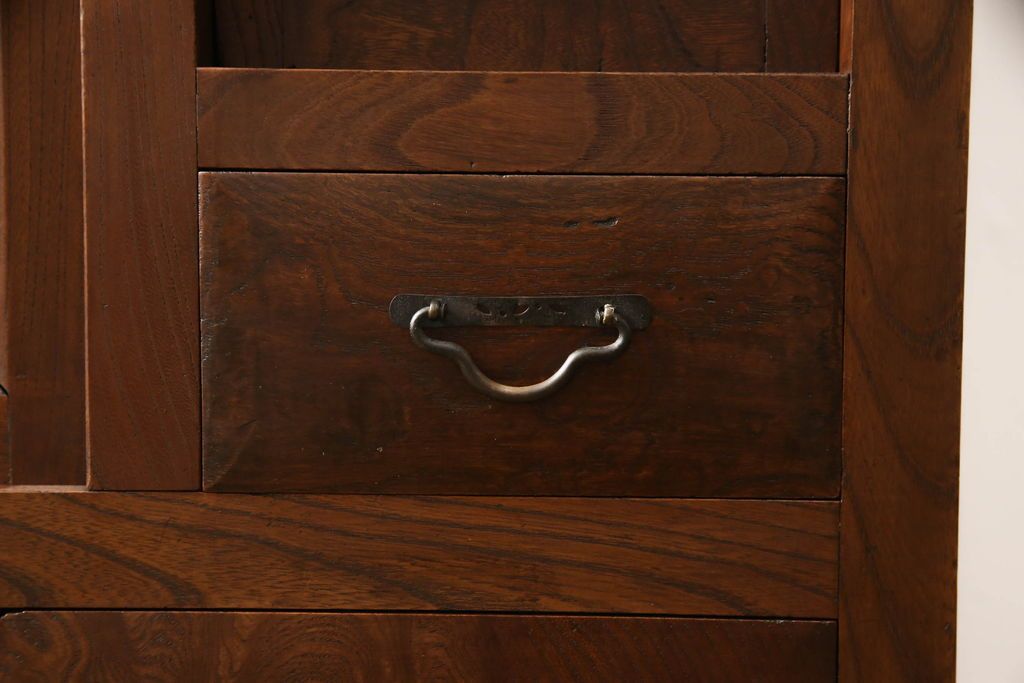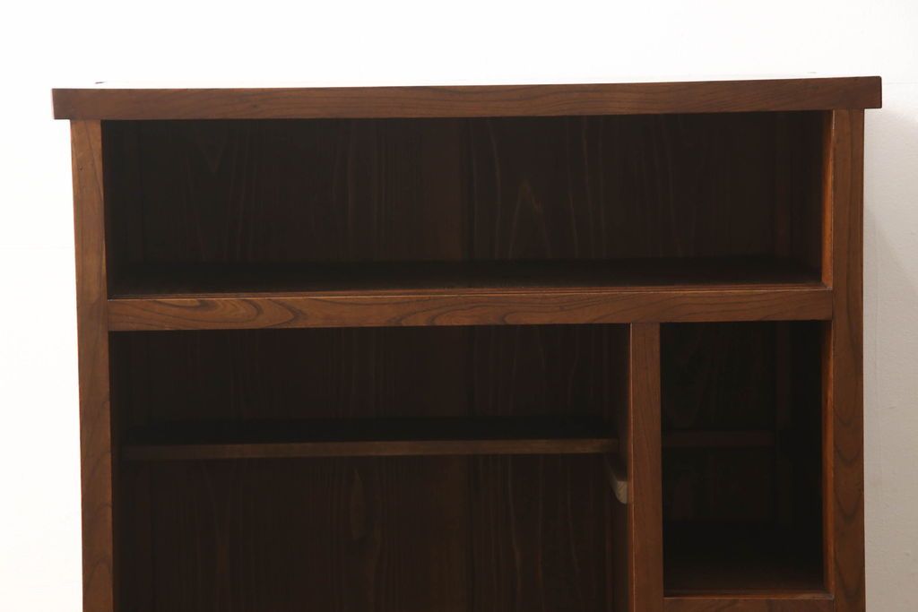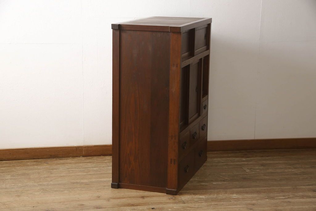 和箪笥> 茶箪笥・茶棚 > 大正昭和初期の収納箪笥の見た目を変えずに奇麗にリペア!引手や取っ手の金具部分は現状のものを使用。現状の色味をベースにワントーン程濃くなるように着色。(関東水屋箪笥、サイドキャビネット、収納棚、戸棚、茶箪笥)