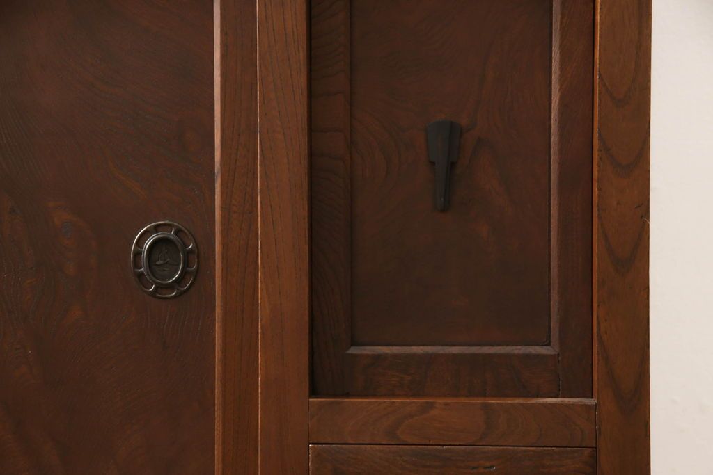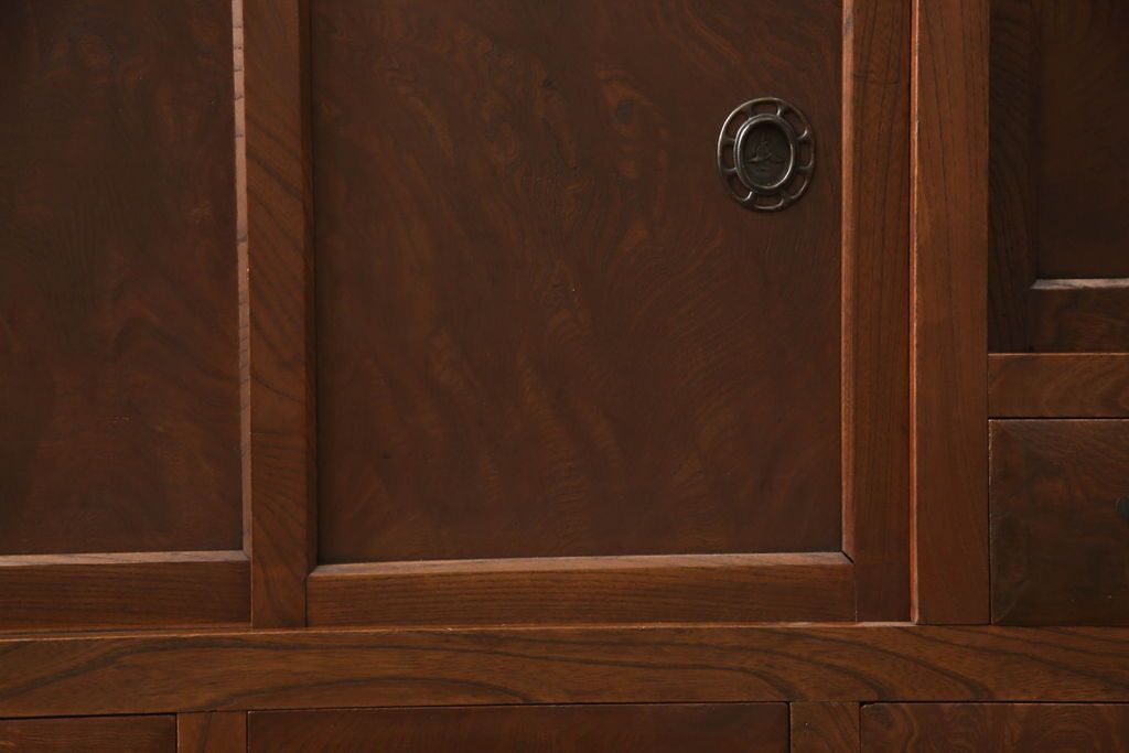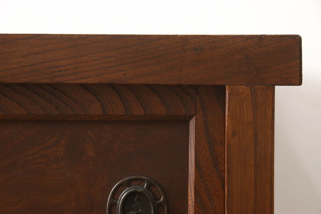 セミオーダー家具実績 > 大正昭和初期の収納箪笥の見た目を変えずに奇麗にリペア!引手や取っ手の金具部分は現状のものを使用。現状の色味をベースにワントーン程濃くなるように着色。(関東水屋箪笥、サイドキャビネット、収納棚、戸棚、茶箪笥)