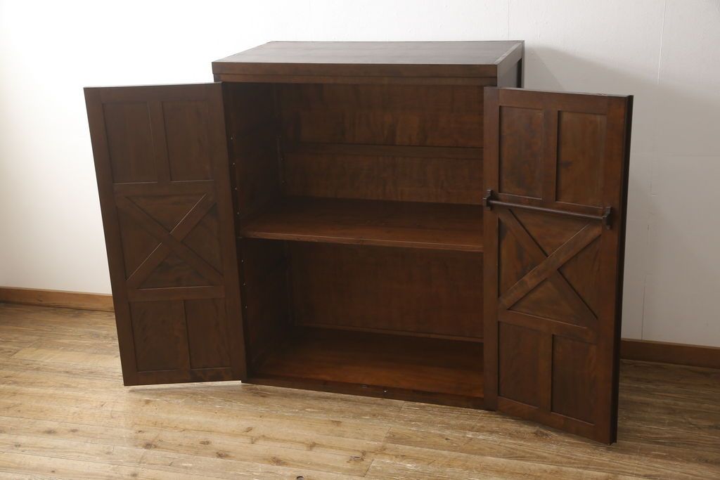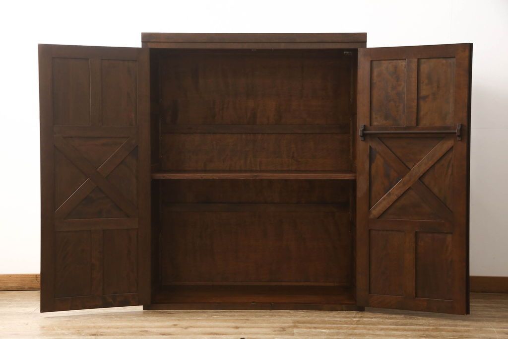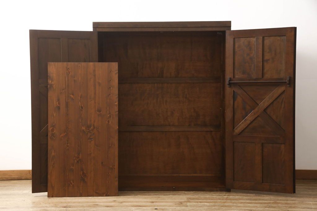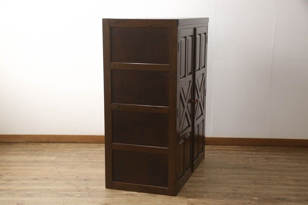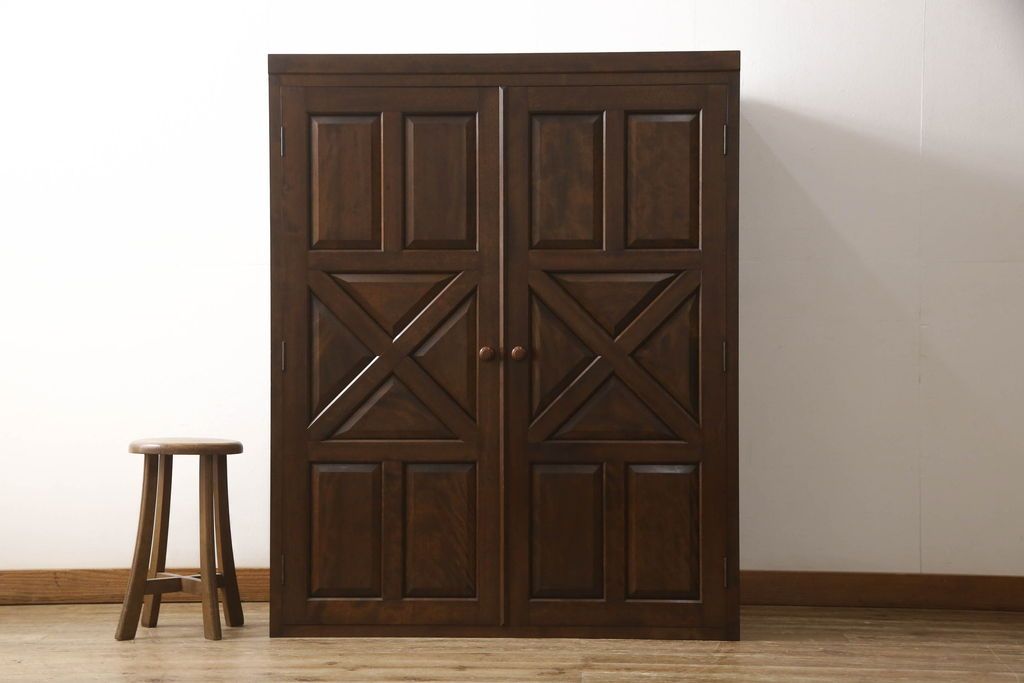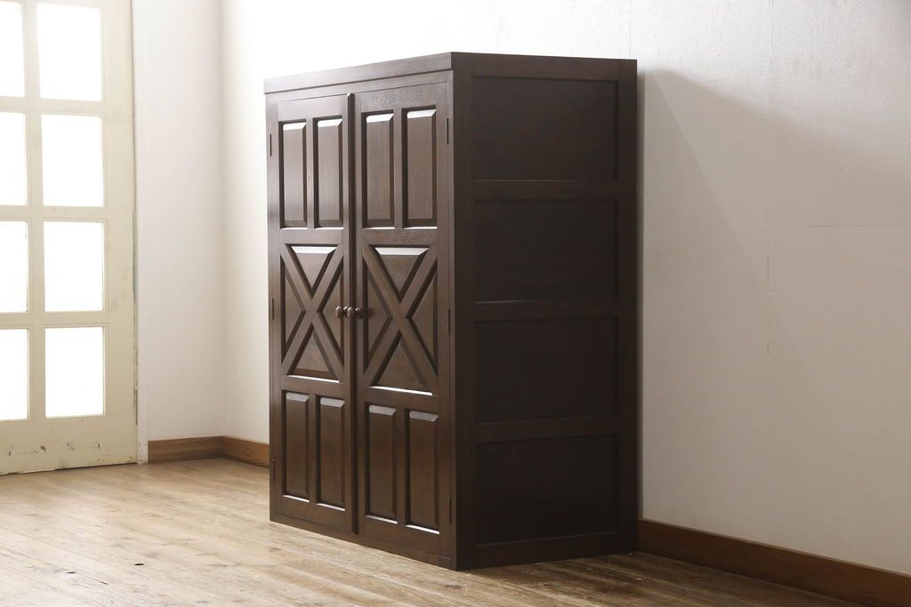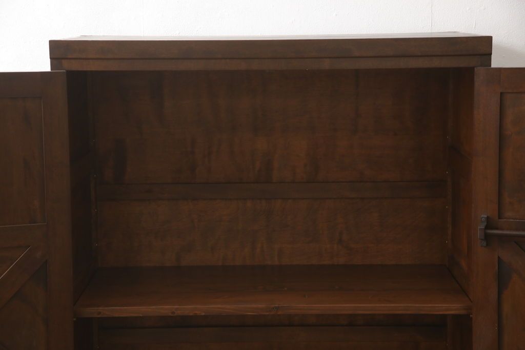 ワードローブ・ロッカー> ワードローブ > 松本民芸家具の収納棚をリペア&カスタム!お客様のご希望に合わせて棚板を1枚、100mmピッチで棚受けを作成。現状のお品物に合わせて着色。( キャビネット、ワードローブ)