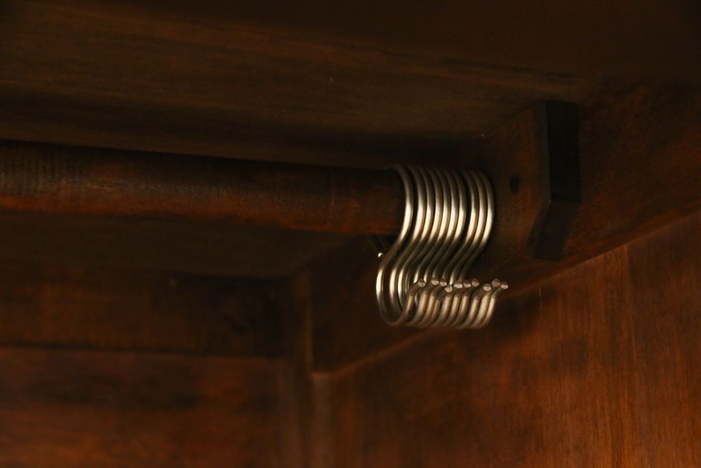 松本民芸家具の収納棚をリペア&カスタム!お客様のご希望に合わせて棚板を1枚、100mmピッチで棚受けを作成。現状のお品物に合わせて着色。( キャビネット、ワードローブ)