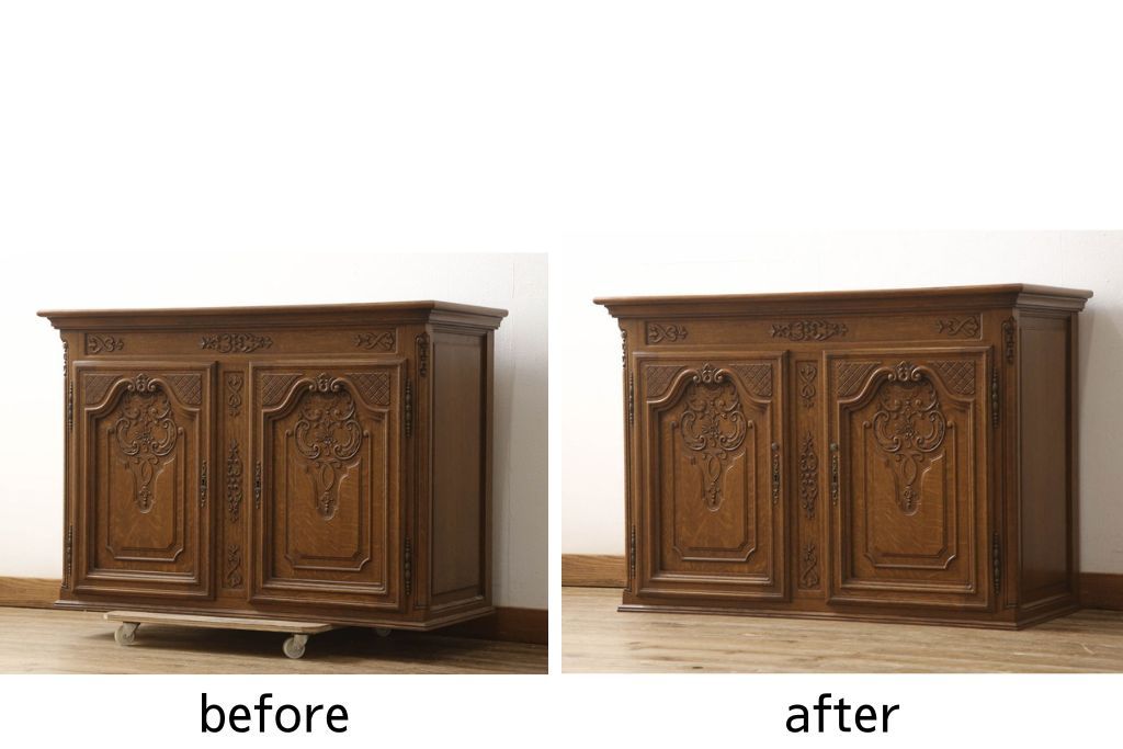 セミオーダー家具実績 > サイドボードをリペア&カスタム!取っ手を新たに取り付け。鍵を使用しない場合でもカチッと扉が閉まるよう扉の内側と本体にマグネットキャッチを取り付け。(収納棚、戸棚、サイドキャビネット、ヴィンテージ)