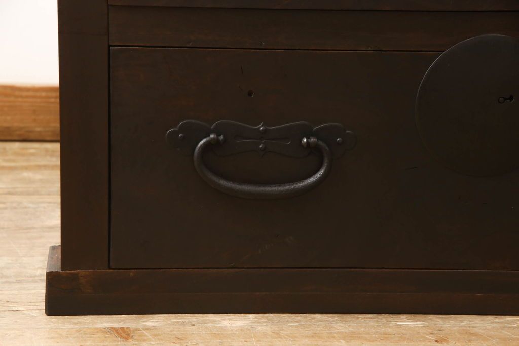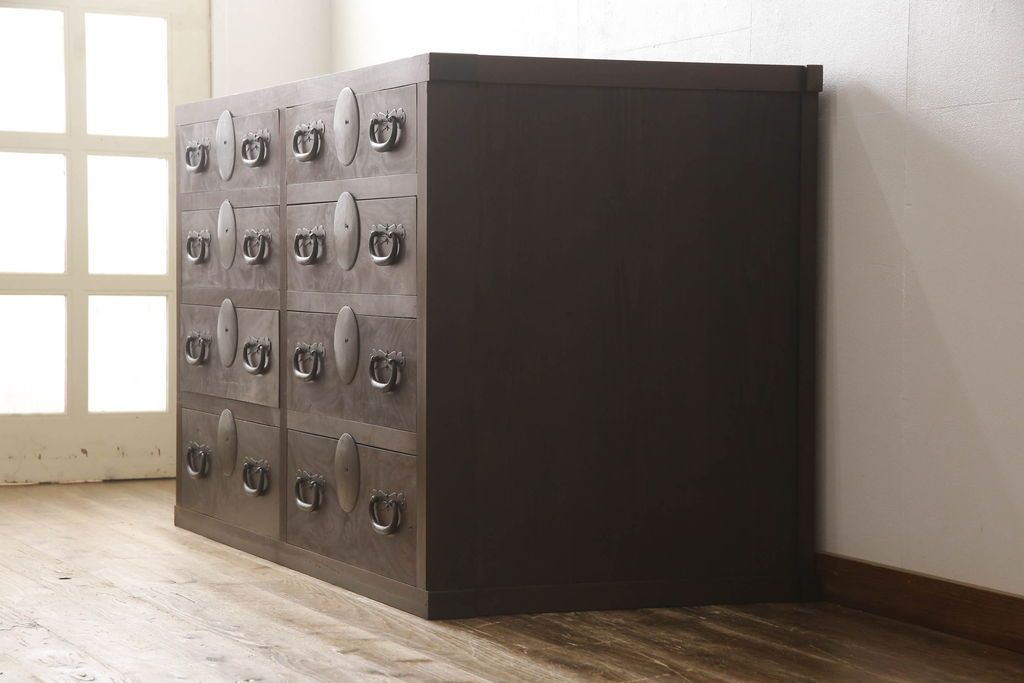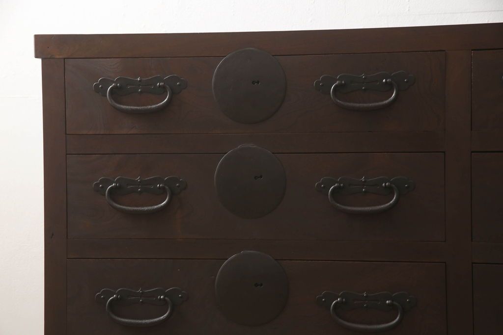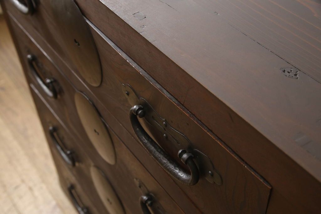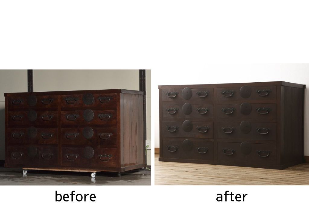 セミオーダー家具実績 > 明治時代の収納箪笥の見た目を変えずに奇麗にリペア!現状をベースに着色。(時代箪笥、整理タンス、収納たんす、引き出し、ローチェスト、ローボード)