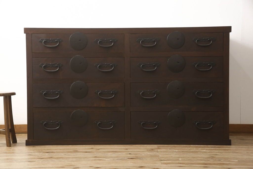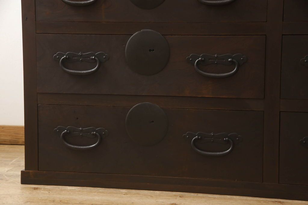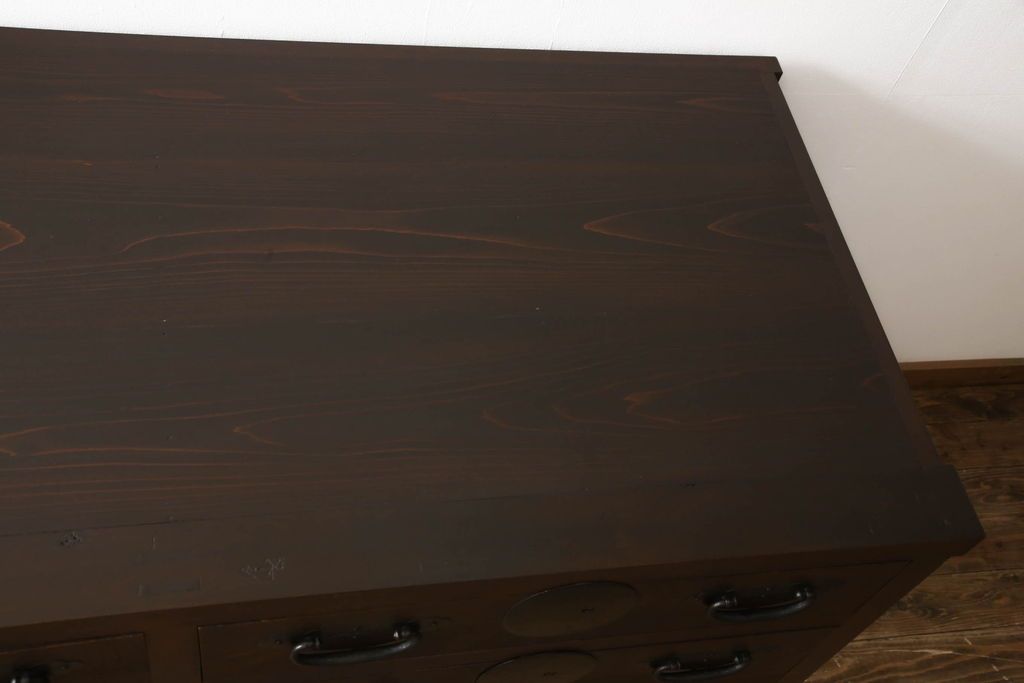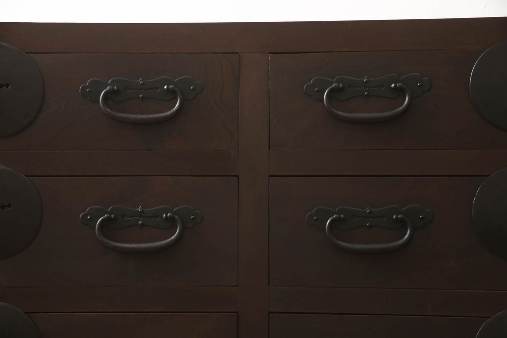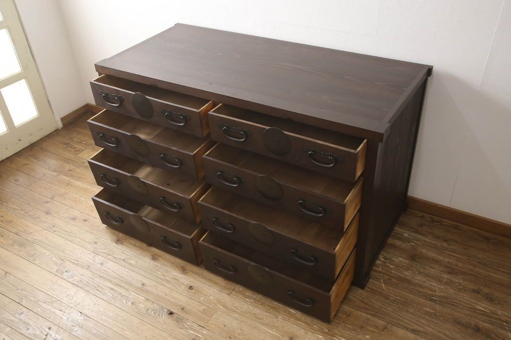 セミオーダー家具実績 > 明治時代の収納箪笥の見た目を変えずに奇麗にリペア!現状をベースに着色。(時代箪笥、整理タンス、収納たんす、引き出し、ローチェスト、ローボード)