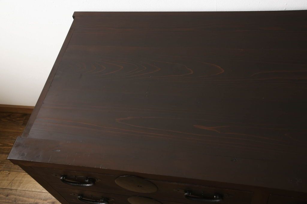 チェスト・引き出し> ローチェスト > 明治時代の収納箪笥の見た目を変えずに奇麗にリペア!現状をベースに着色。(時代箪笥、整理タンス、収納たんす、引き出し、ローチェスト、ローボード)