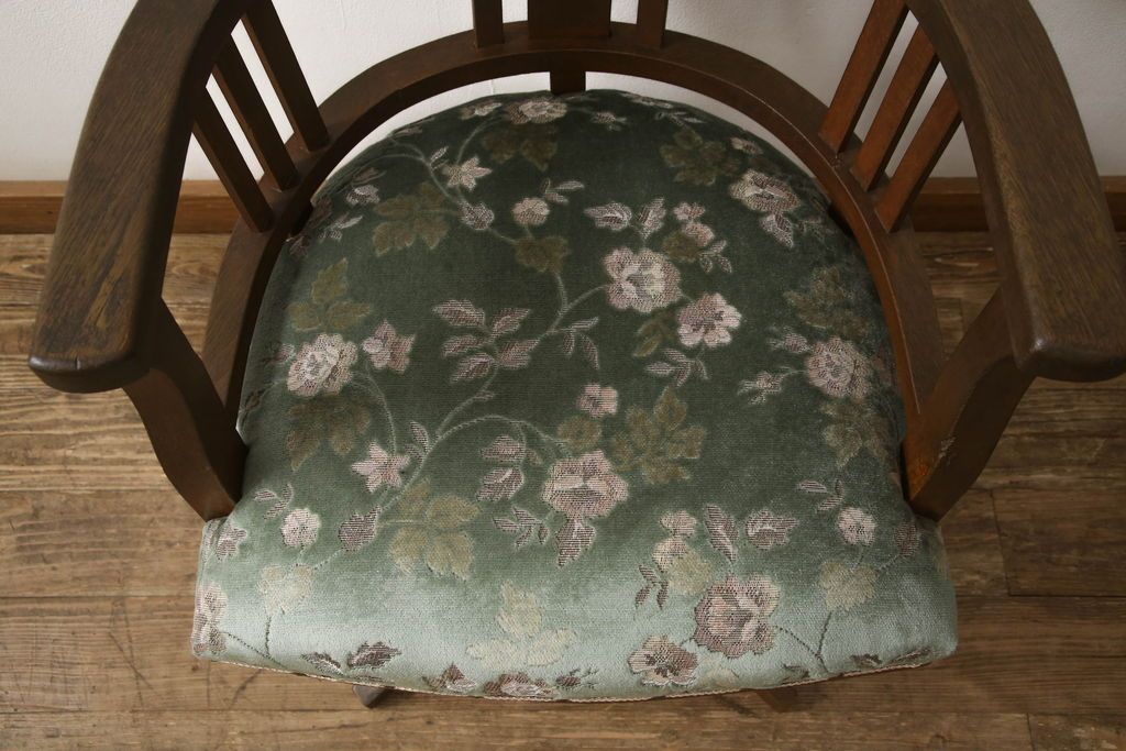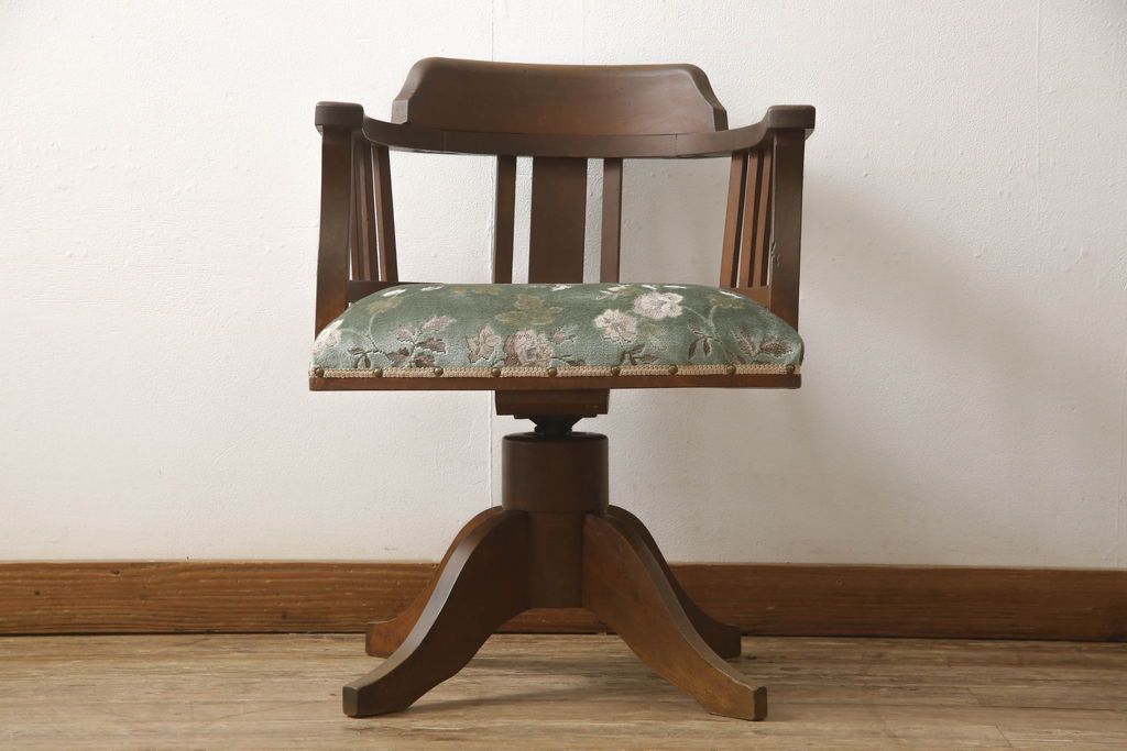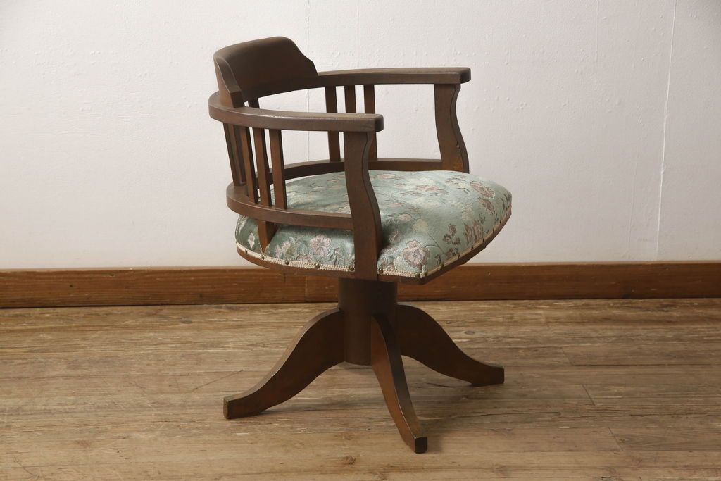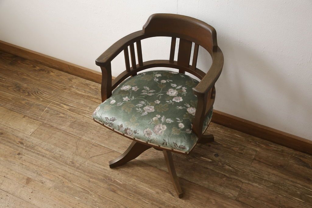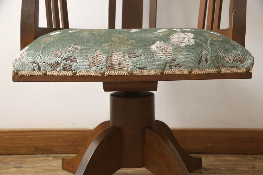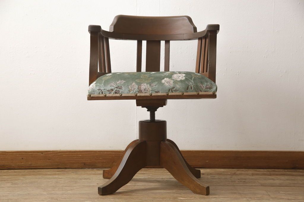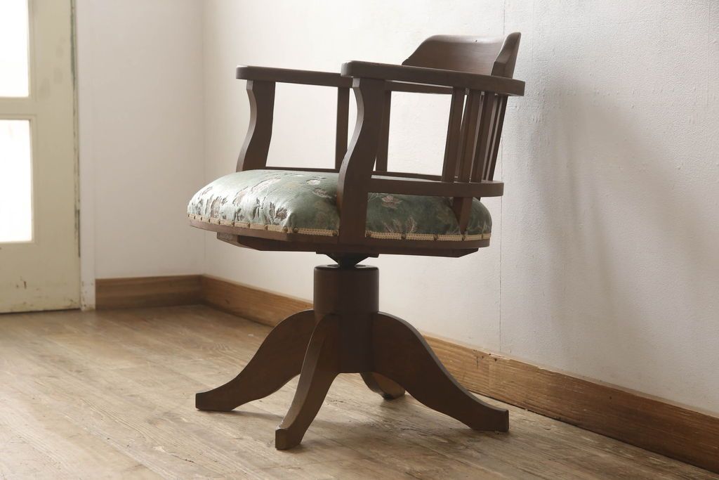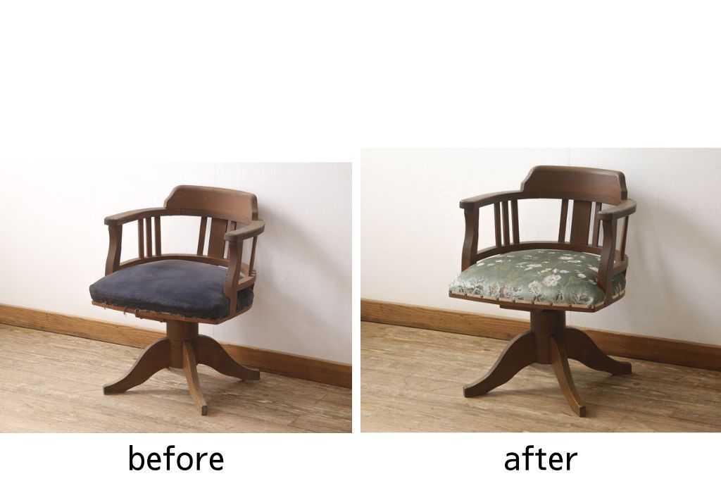 椅子・ベンチ> アームチェア > 回転椅子をリペア&カスタム!ご希望の生地で座面部分を張り替え。既存の色に合わせた着色。ウレタン塗装で仕上げ。(ドクターチェア、デスクチェア、回転イス、アームチェア)