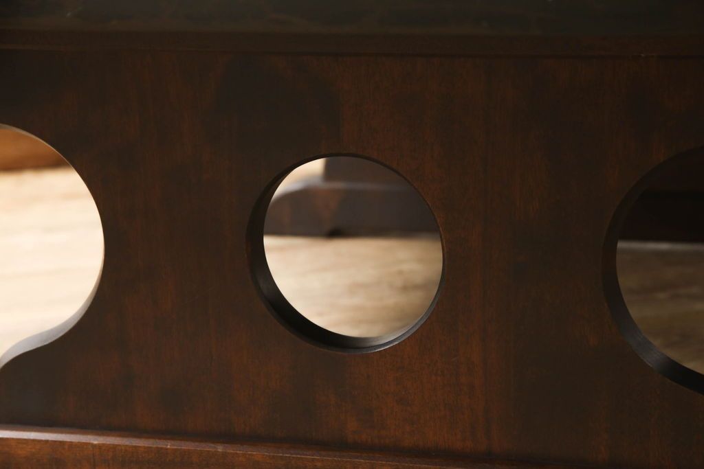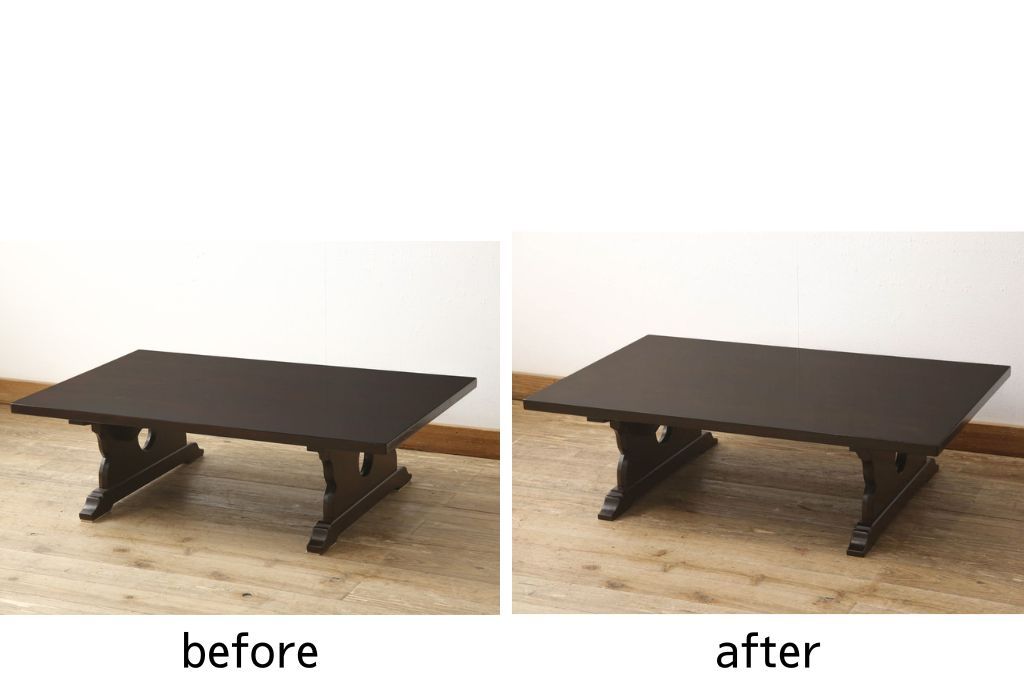 ラフジュ工房> セミオーダー家具実績 > 松本民芸家具の折り畳み式テーブルを変えずに奇麗にリペア!天板の塗装を剥離して輪ジミのできにくい塗料で再塗装。(ローテーブル、ちゃぶ台、文机、センターテーブル、折り畳み)