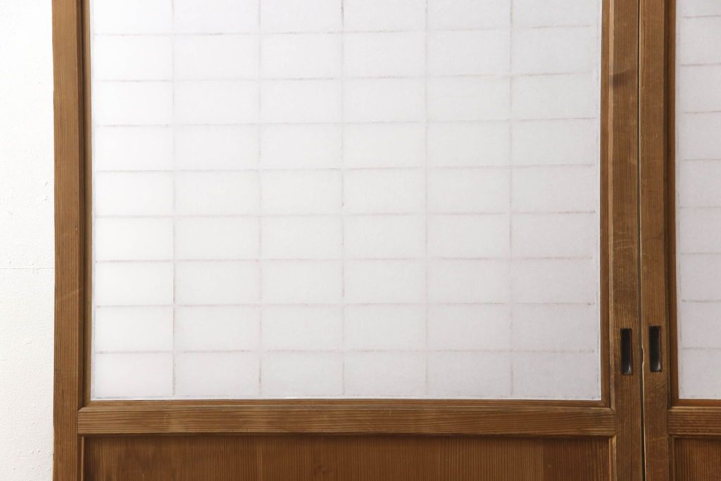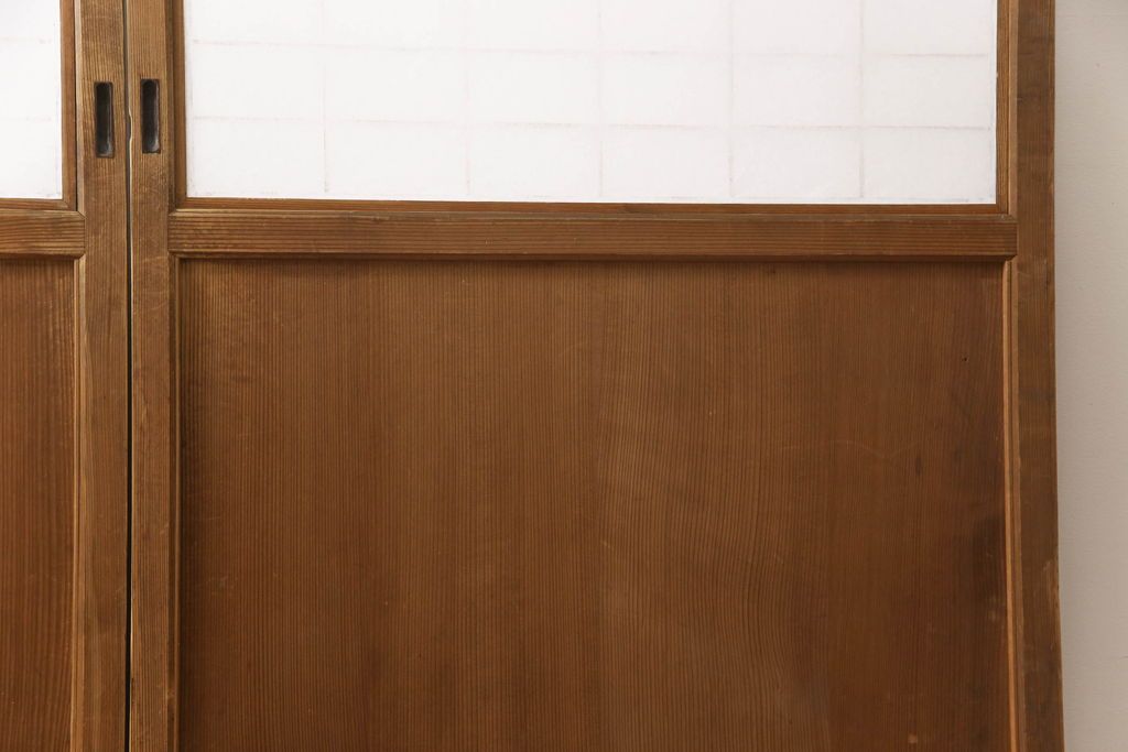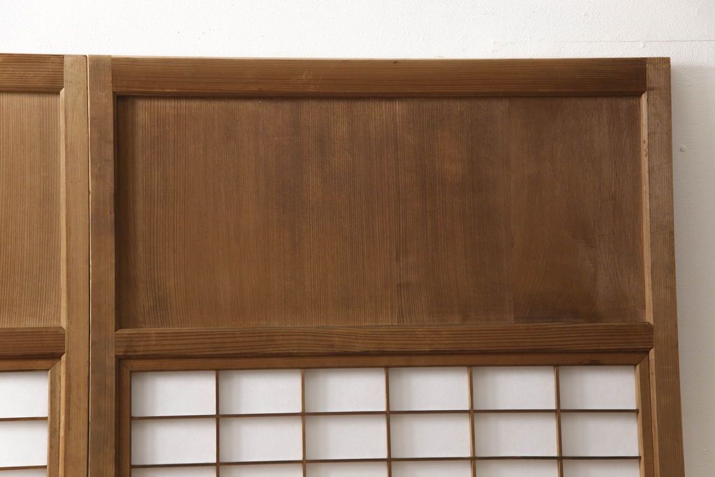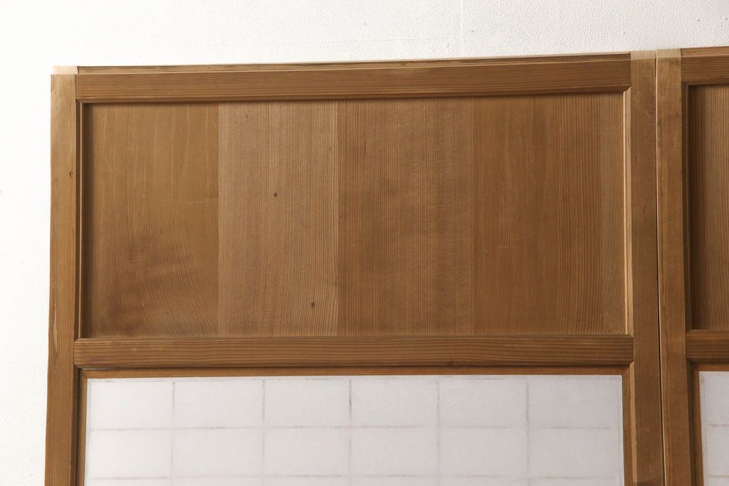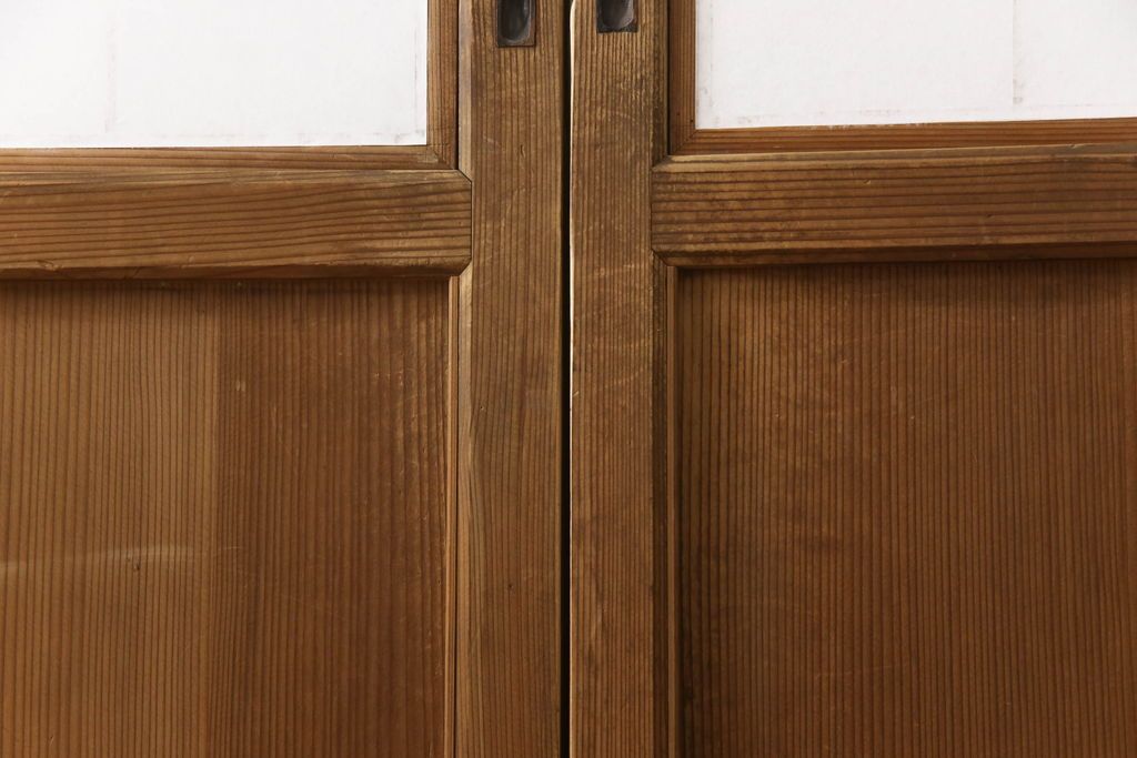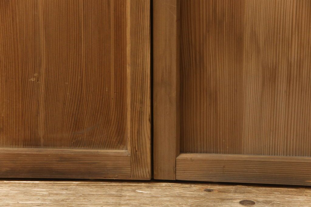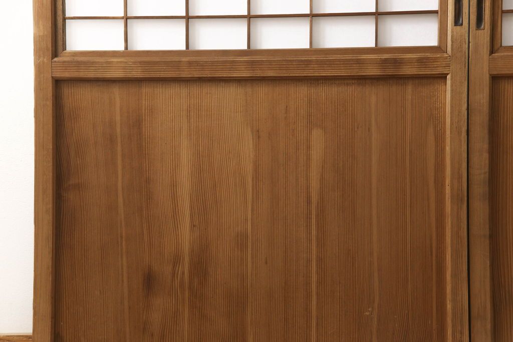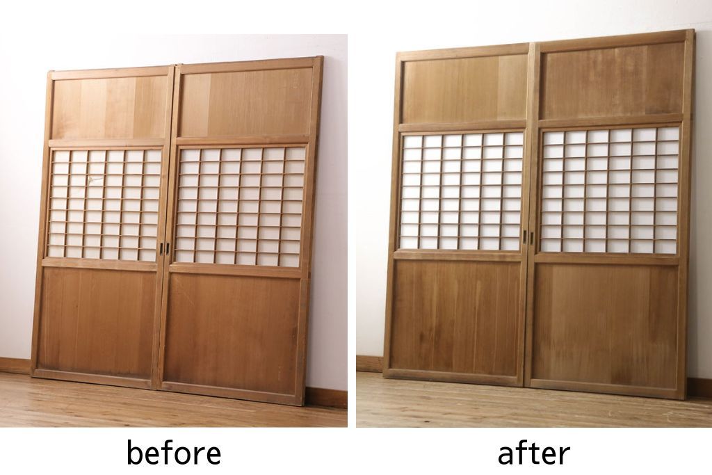 ドア・建具> 2枚・3枚セット > 障子帯戸の見た目を変えずに奇麗にリペア!V型戸車を取り付け、プラスチック障子紙に張り替え。鏡板の隙間防止処理。着色は行わず、シミ抜きのみで仕上げ。(障子戸、格子戸、板戸、引き戸、建具)