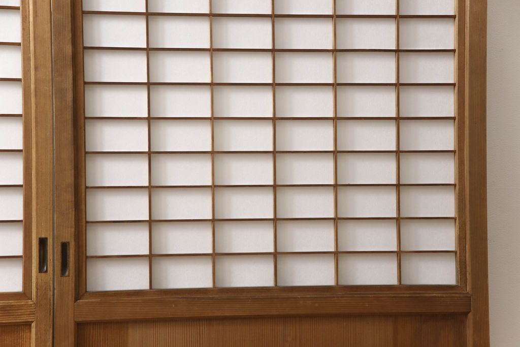ドア・建具> 格子戸 > 障子帯戸の見た目を変えずに奇麗にリペア!V型戸車を取り付け、プラスチック障子紙に張り替え。鏡板の隙間防止処理。着色は行わず、シミ抜きのみで仕上げ。(障子戸、格子戸、板戸、引き戸、建具)