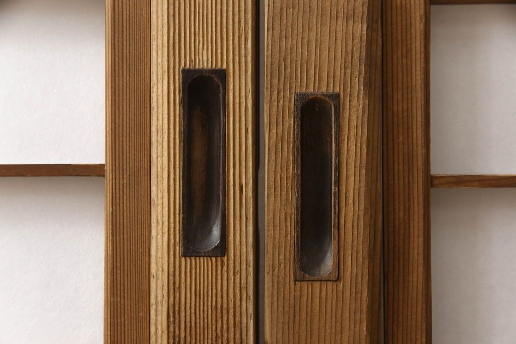 セミオーダー家具実績 > 障子帯戸の見た目を変えずに奇麗にリペア!V型戸車を取り付け、プラスチック障子紙に張り替え。鏡板の隙間防止処理。着色は行わず、シミ抜きのみで仕上げ。(障子戸、格子戸、板戸、引き戸、建具)