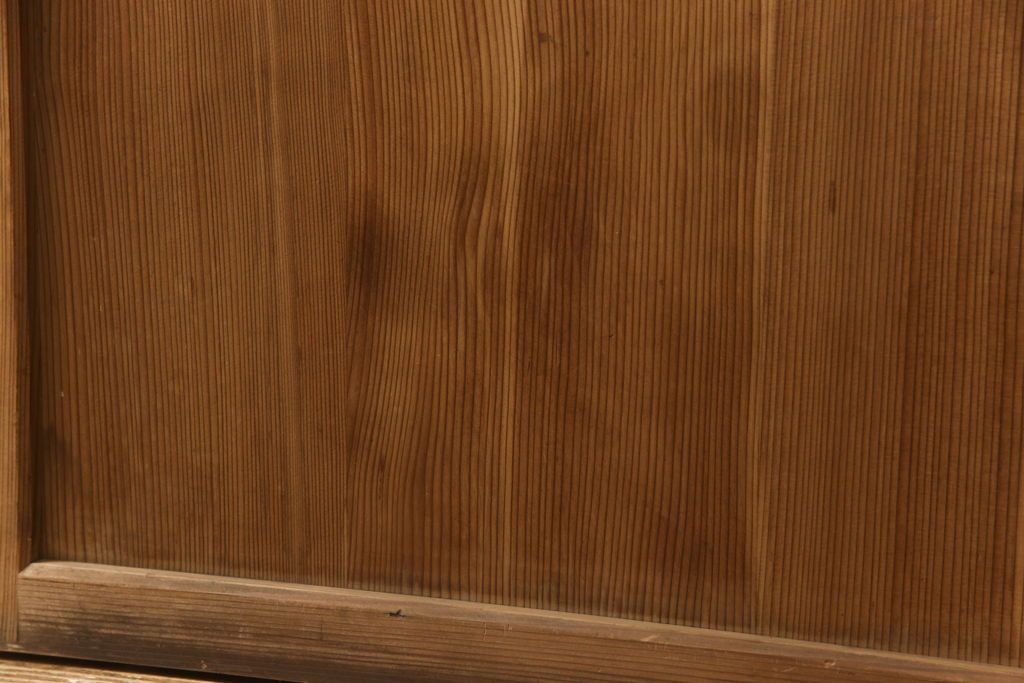ドア・建具> 板戸・帯戸 > 障子帯戸の見た目を変えずに奇麗にリペア!V型戸車を取り付け、プラスチック障子紙に張り替え。鏡板の隙間防止処理。着色は行わず、シミ抜きのみで仕上げ。(障子戸、格子戸、板戸、引き戸、建具)