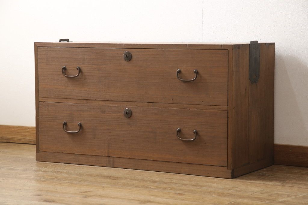 和箪笥> 衣装箪笥 > 桐箪笥をリペア&カスタム!天板を補強し、金具をフラットに修正加工。自然な茶色に着色仕上げ。(ローボード、テレビ台、ローチェスト、引き出し、桐箪笥、桐たんす、収納箪笥、時代箪笥)