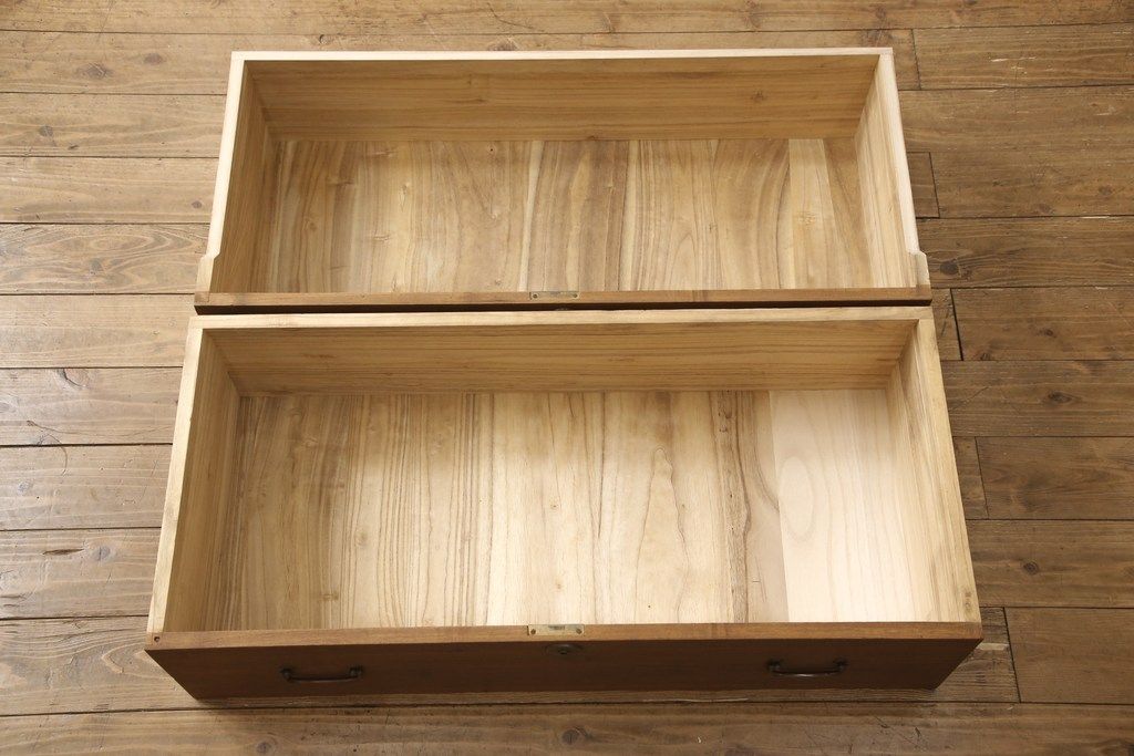 和箪笥 > 桐箪笥をリペア&カスタム!天板を補強し、金具をフラットに修正加工。自然な茶色に着色仕上げ。(ローボード、テレビ台、ローチェスト、引き出し、桐箪笥、桐たんす、収納箪笥、時代箪笥)