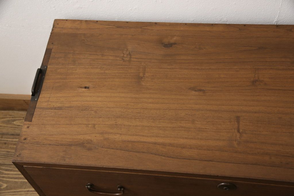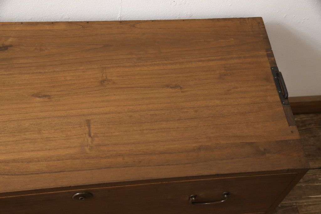 桐箪笥をリペア&カスタム!天板を補強し、金具をフラットに修正加工。自然な茶色に着色仕上げ。(ローボード、テレビ台、ローチェスト、引き出し、桐箪笥、桐たんす、収納箪笥、時代箪笥)