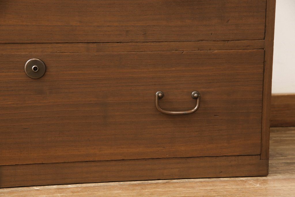キャビネット・戸棚> テレビ台・ローボード > 桐箪笥をリペア&カスタム!天板を補強し、金具をフラットに修正加工。自然な茶色に着色仕上げ。(ローボード、テレビ台、ローチェスト、引き出し、桐箪笥、桐たんす、収納箪笥、時代箪笥)
