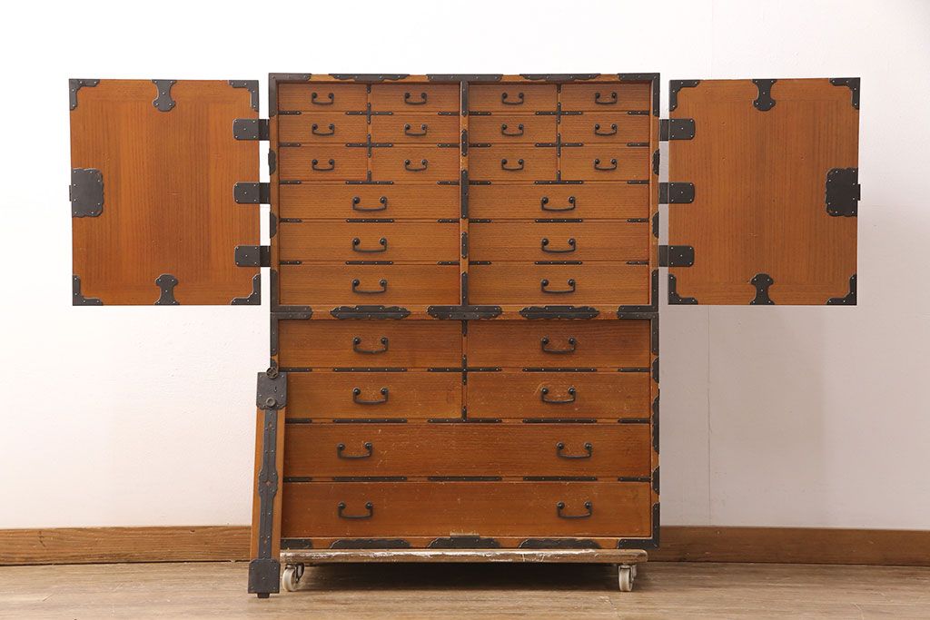 ラフジュ工房> ブランド家具の買取実績> 桐たんす(加茂桐箪笥、高級桐タンス)の買取実績 > 【買取】最高級 超レア 博物館クラス!! 飛騨高山 総春慶塗り 総桐二段重ね帳場箪笥(桐箪笥、桐たんす)を買取りました。