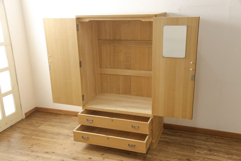 民芸家具 > 加茂総桐箪笥の見た目を変えずに綺麗にリペア!本来の美しさを活かした木地色仕上げ。(胴丸、総桐たんす、洋服タンス、ワードローブ、桐タンス)