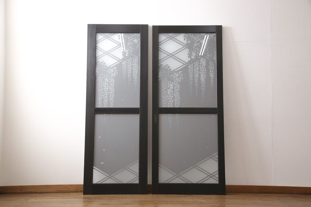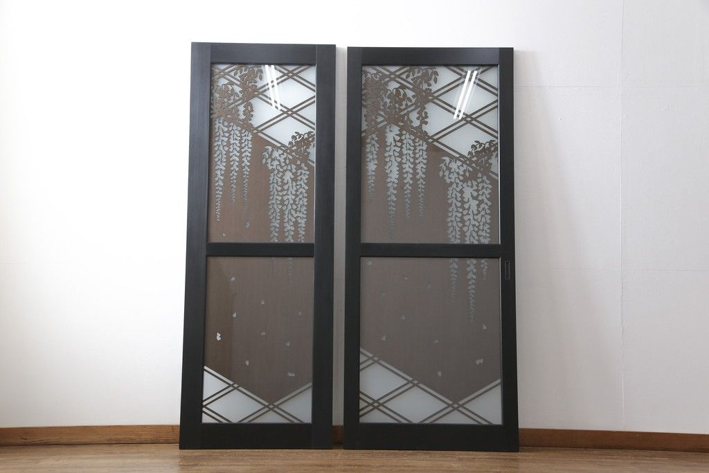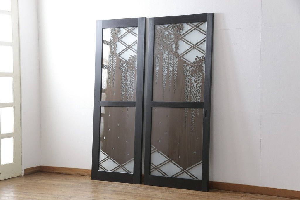 ドア・建具> 2枚・3枚セット > 透かし彫りガラス戸を新規製作!表面にクリアガラス、裏面にすりガラスを取り付け。枠はご希望の色味に着色仕上げ。(引き戸、建具)