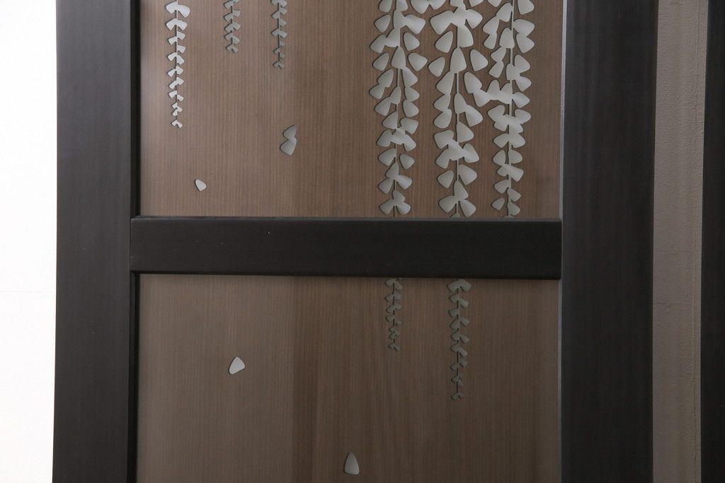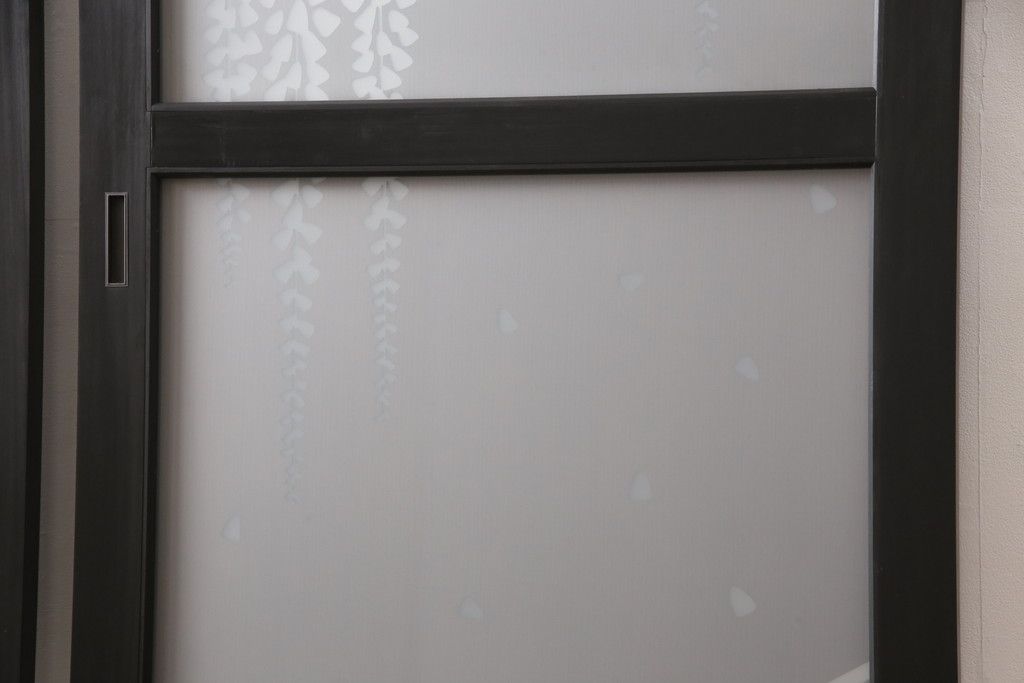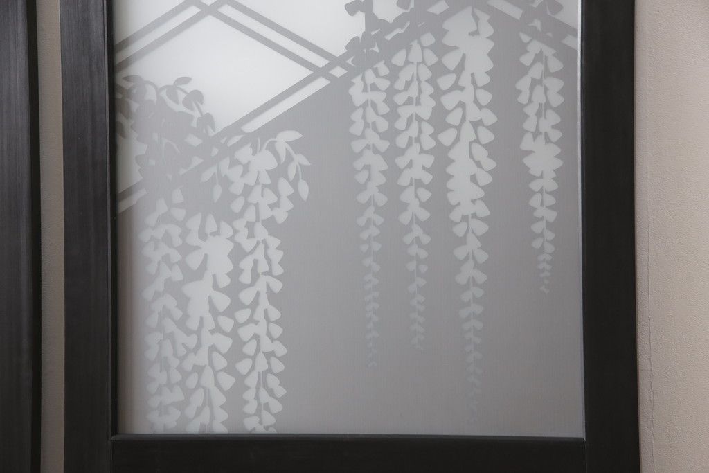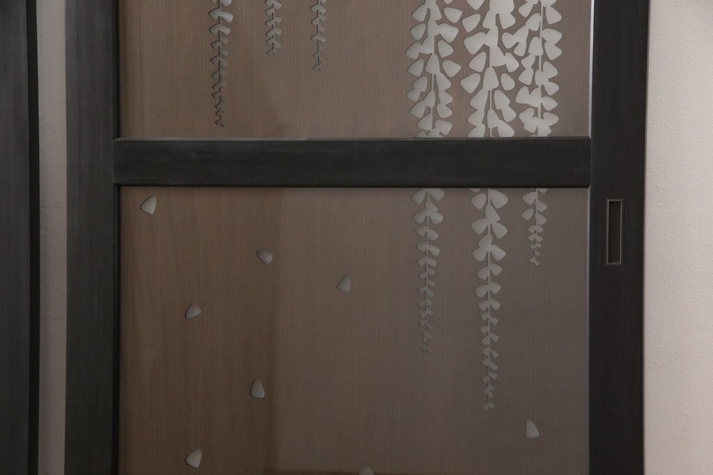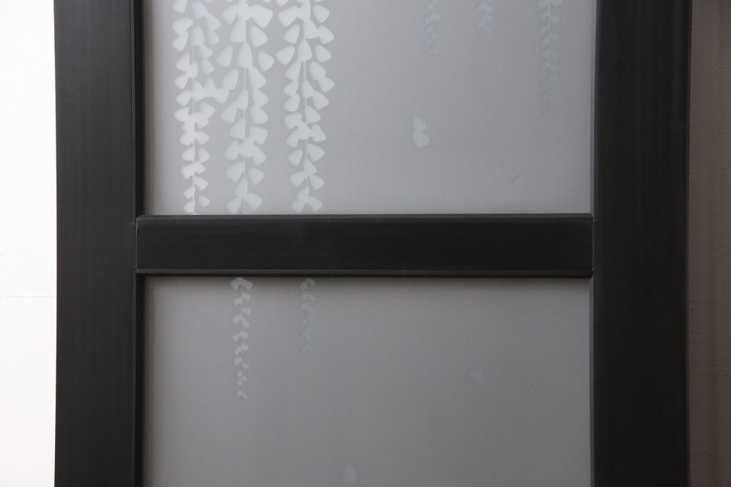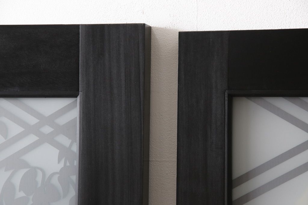フルオーダー家具実績 > 透かし彫りガラス戸を新規製作!表面にクリアガラス、裏面にすりガラスを取り付け。枠はご希望の色味に着色仕上げ。(引き戸、建具)