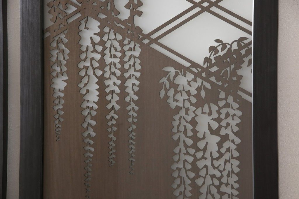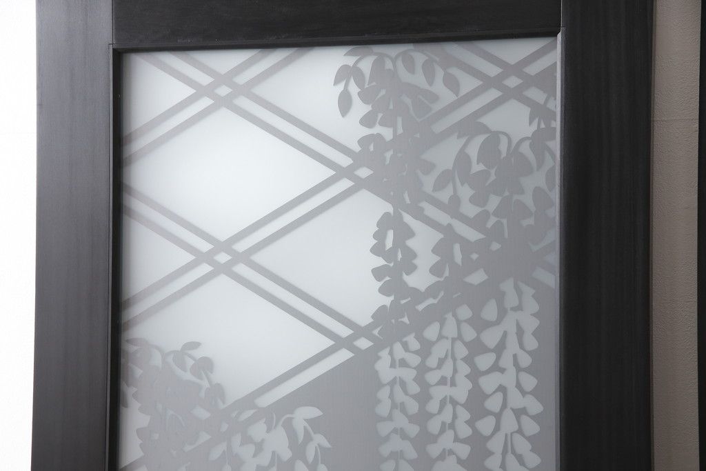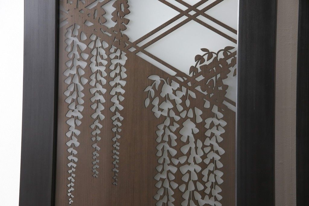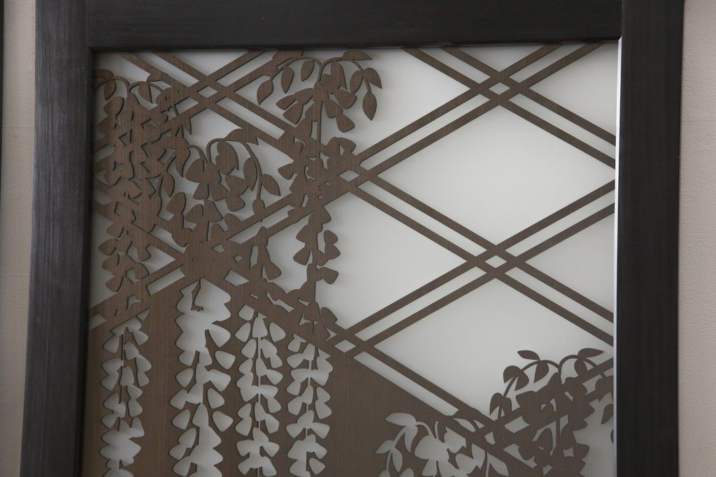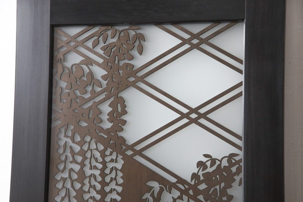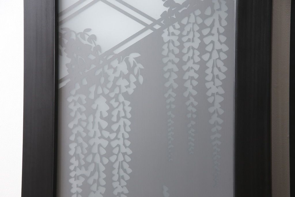 フルオーダー家具実績 > 透かし彫りガラス戸を新規製作!表面にクリアガラス、裏面にすりガラスを取り付け。枠はご希望の色味に着色仕上げ。(引き戸、建具)