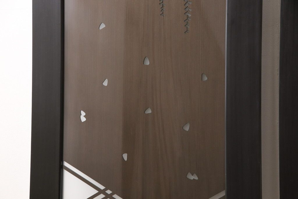 透かし彫りガラス戸を新規製作!表面にクリアガラス、裏面にすりガラスを取り付け。枠はご希望の色味に着色仕上げ。(引き戸、建具)
