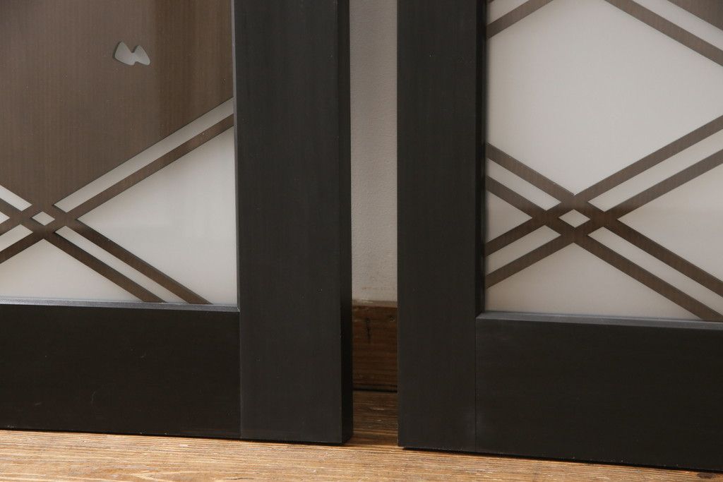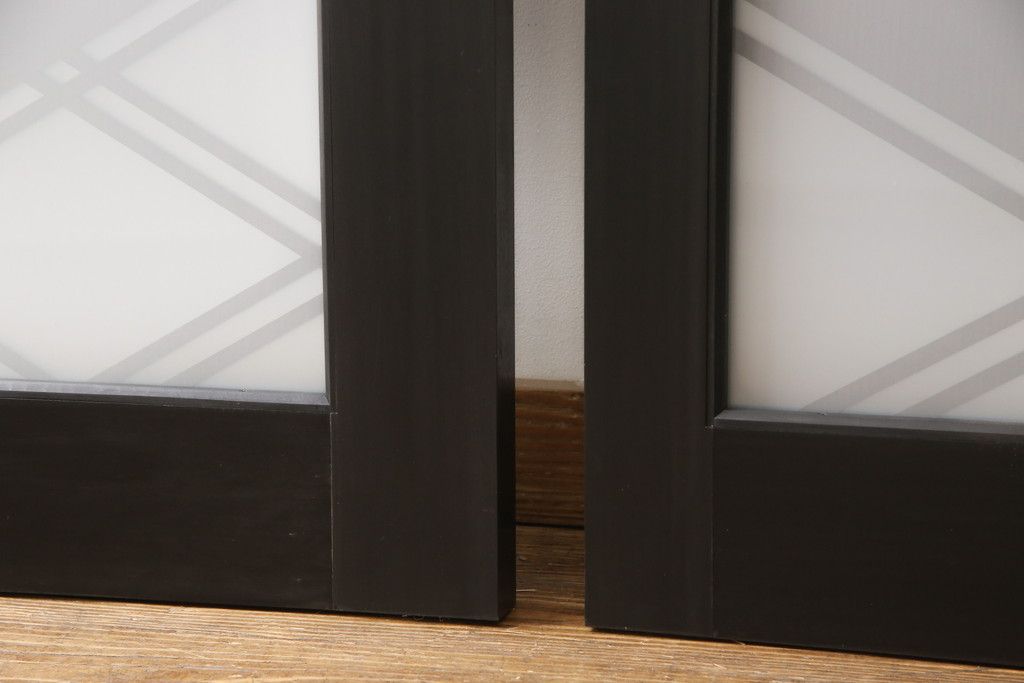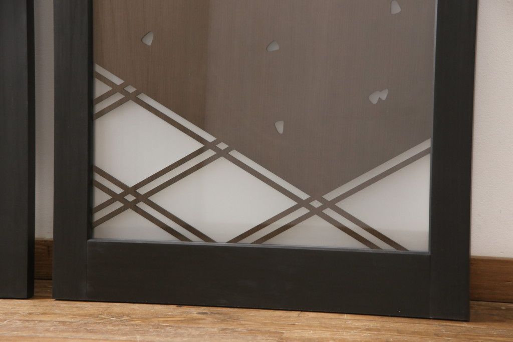 ドア・建具> ガラス戸 > 透かし彫りガラス戸を新規製作!表面にクリアガラス、裏面にすりガラスを取り付け。枠はご希望の色味に着色仕上げ。(引き戸、建具)