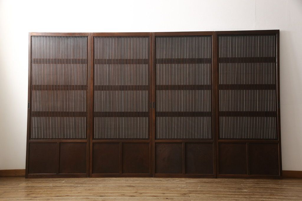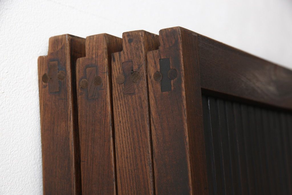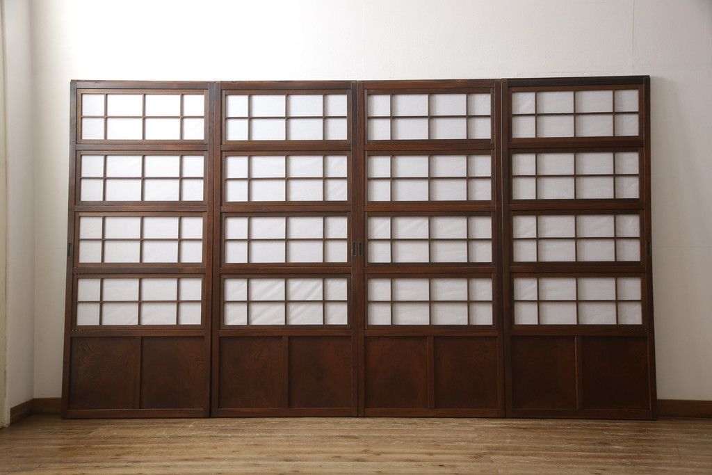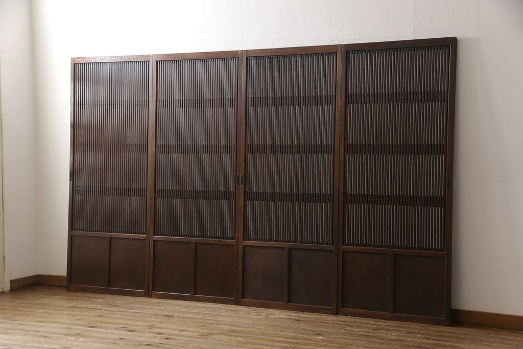 ドア・建具> 4枚〜セット > 格子戸をリペア&カスタム!リサイズし、引手を取り付け。裏障子をプラスチック障子に張替え。1トーン落ち着いた色味に着色仕上げ。(障子戸、引き戸、建具)