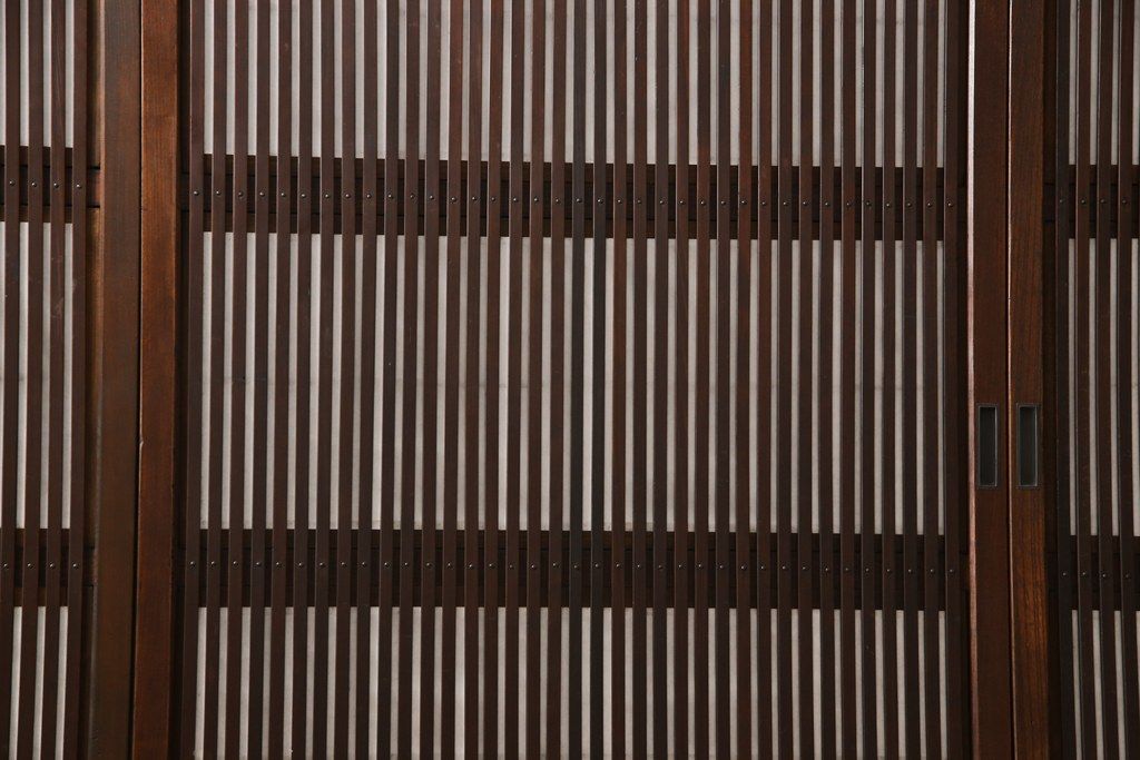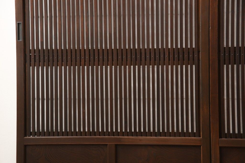 ドア・建具> 格子戸 > 格子戸をリペア&カスタム!リサイズし、引手を取り付け。裏障子をプラスチック障子に張替え。1トーン落ち着いた色味に着色仕上げ。(障子戸、引き戸、建具)