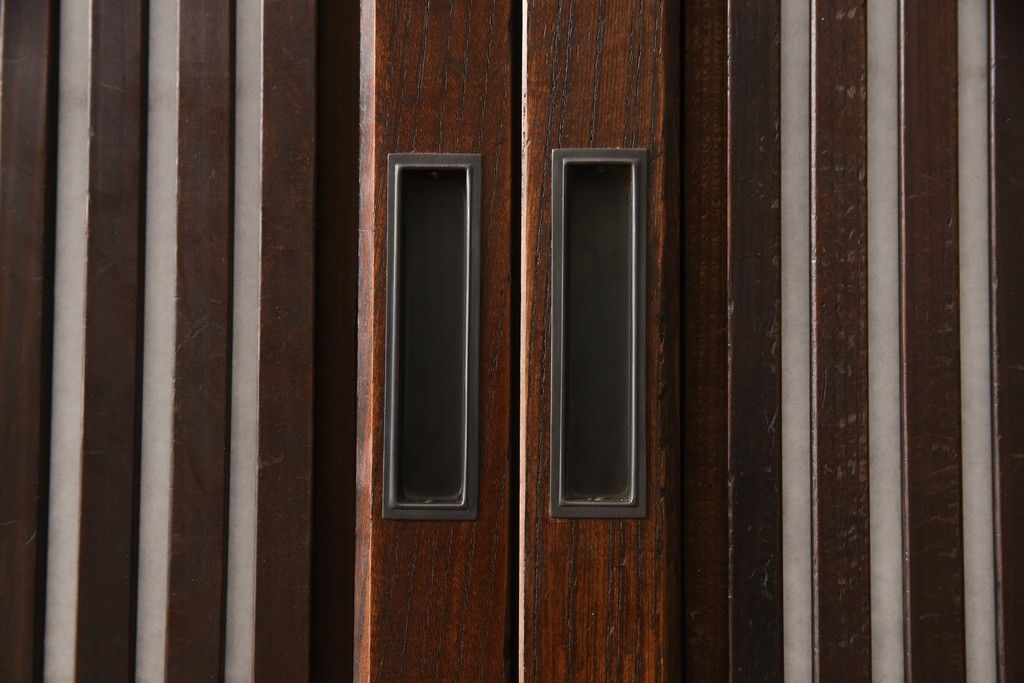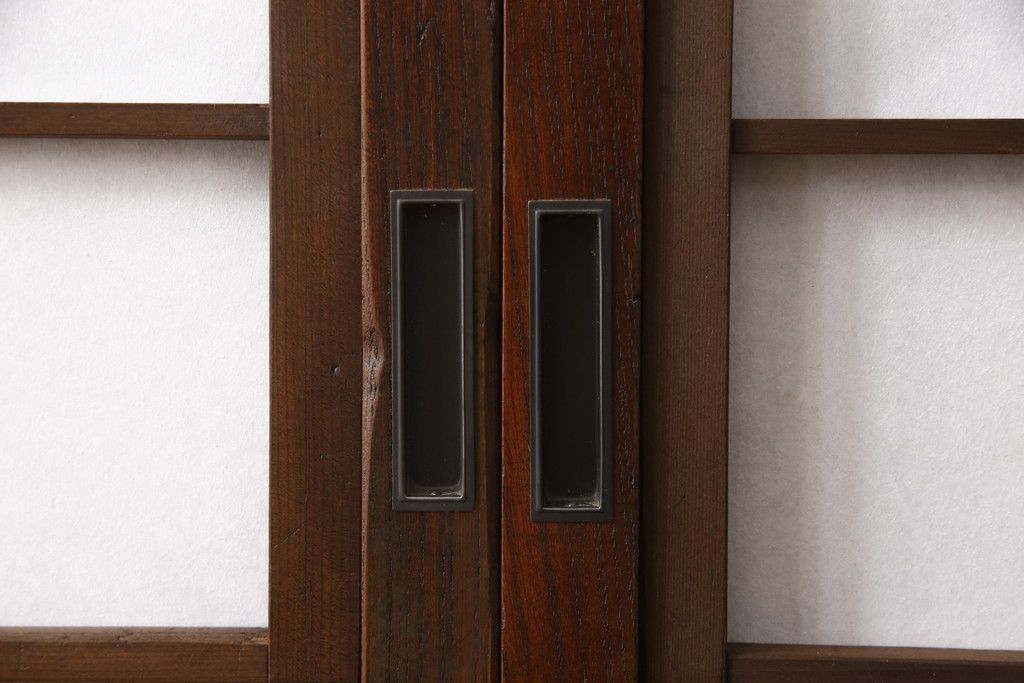 ドア・建具> 引き戸 > 格子戸をリペア&カスタム!リサイズし、引手を取り付け。裏障子をプラスチック障子に張替え。1トーン落ち着いた色味に着色仕上げ。(障子戸、引き戸、建具)