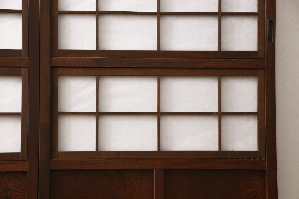 格子戸をリペア&カスタム!リサイズし、引手を取り付け。裏障子をプラスチック障子に張替え。1トーン落ち着いた色味に着色仕上げ。(障子戸、引き戸、建具)