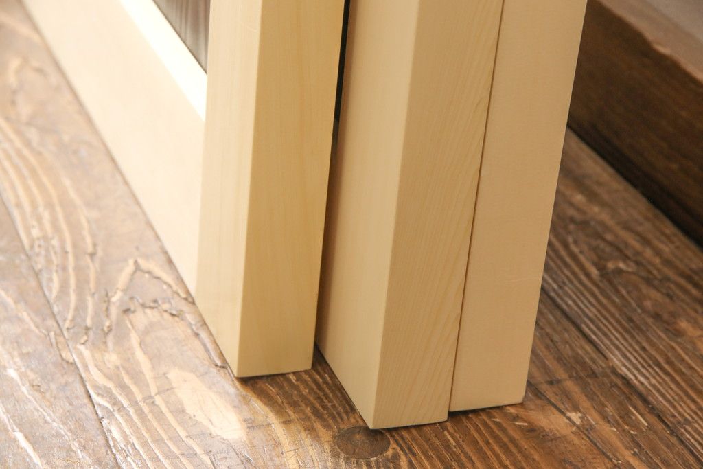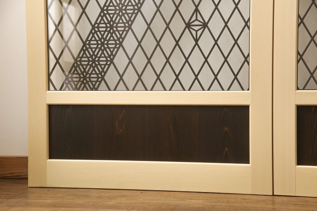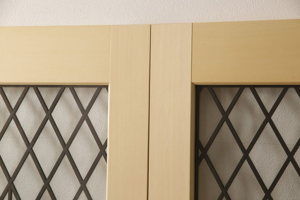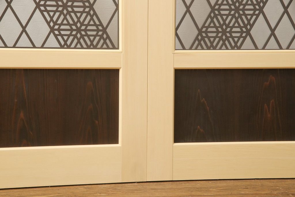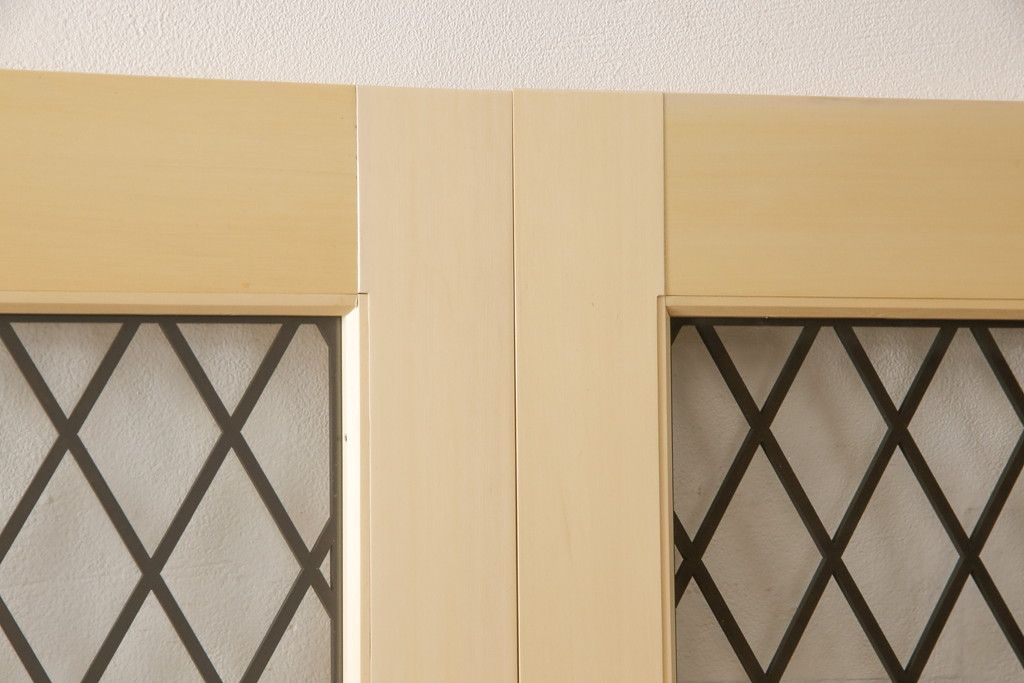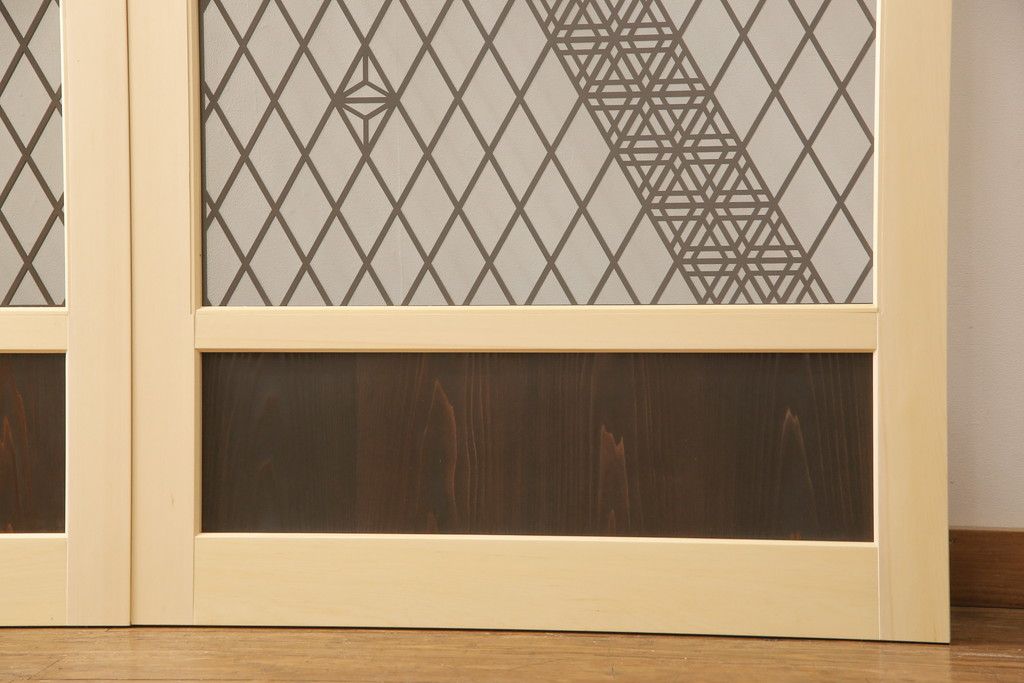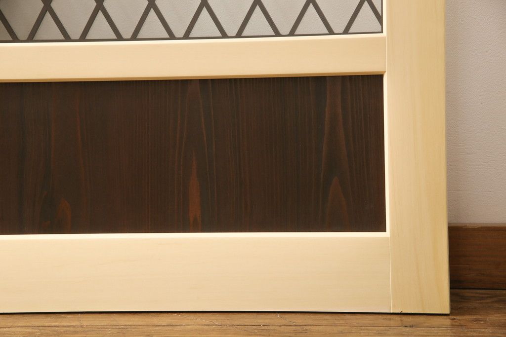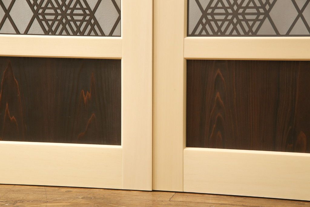 ドア・建具> 2枚・3枚セット > レーザー組子入りガラス戸を新規製作!ガラスはクリアガラスを使用。格子は茶色で着色、建具本体は自然な木味を活かした仕上げ。(引き戸、建具)