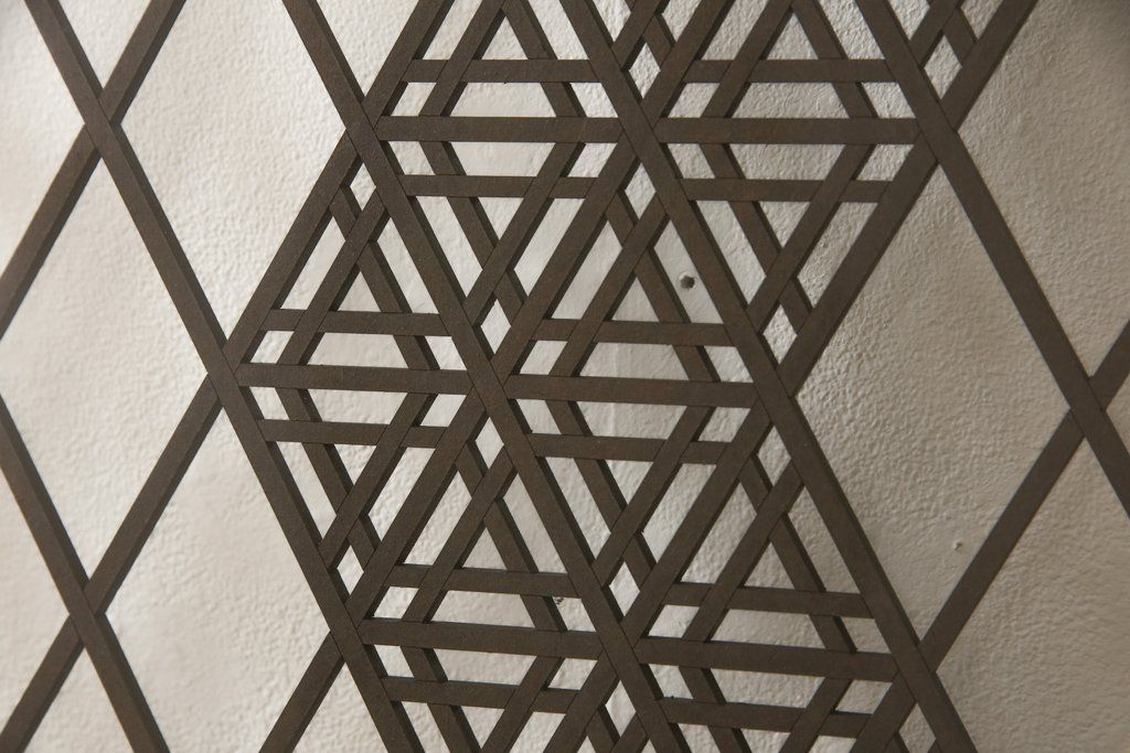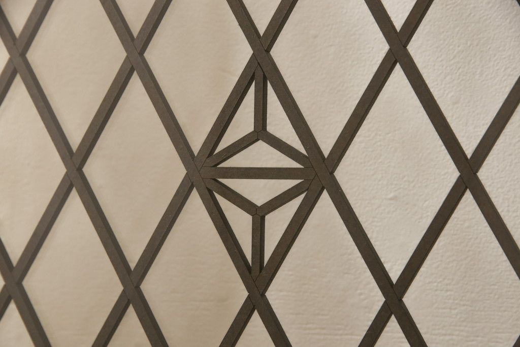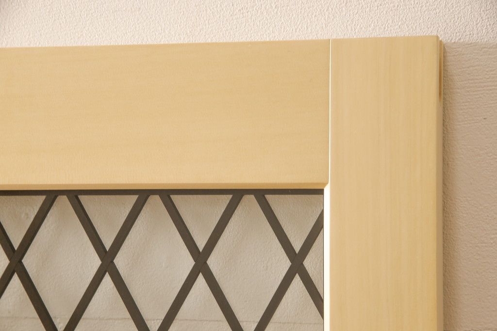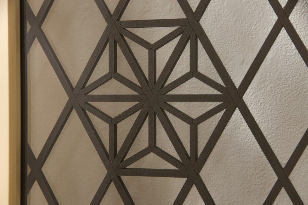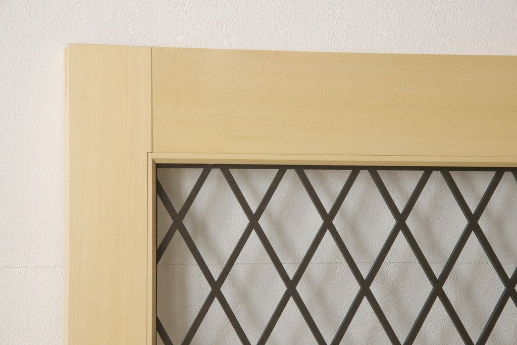 フルオーダー家具実績 > レーザー組子入りガラス戸を新規製作!ガラスはクリアガラスを使用。格子は茶色で着色、建具本体は自然な木味を活かした仕上げ。(引き戸、建具)