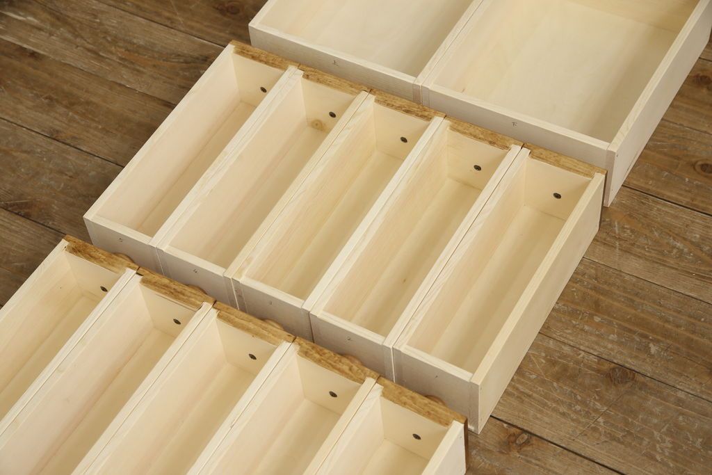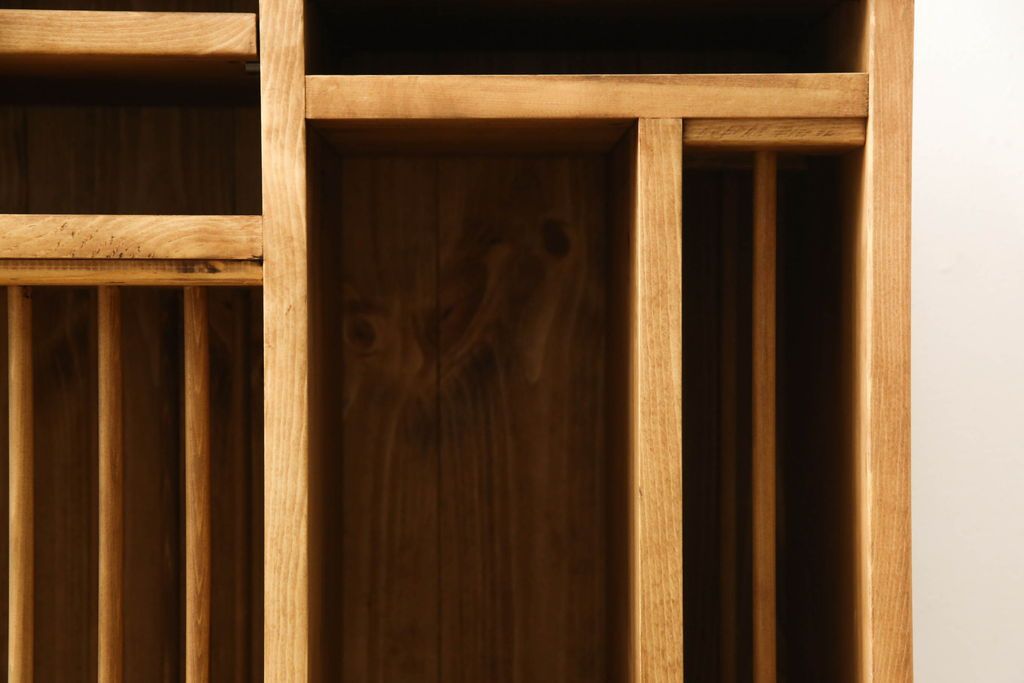 ウォールシェルフを新規製作!お皿やカトラリー用に可動式の棚や引き出しを製作。(収納棚、食器棚、カップボード、サイドキャビネット、サイドボード、引き出し)