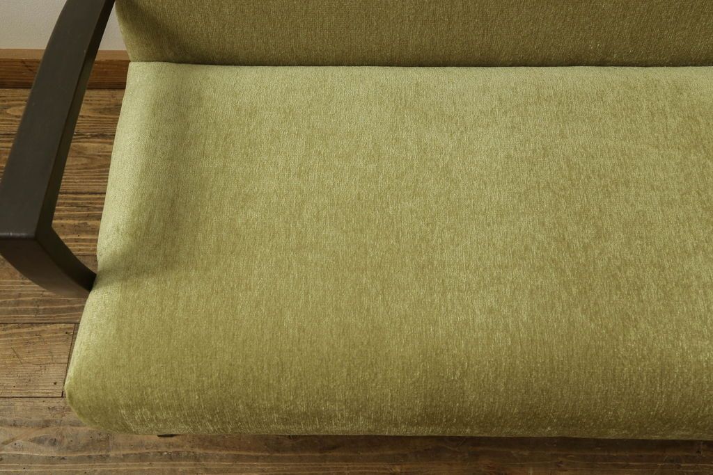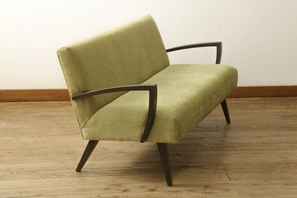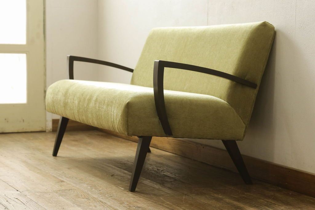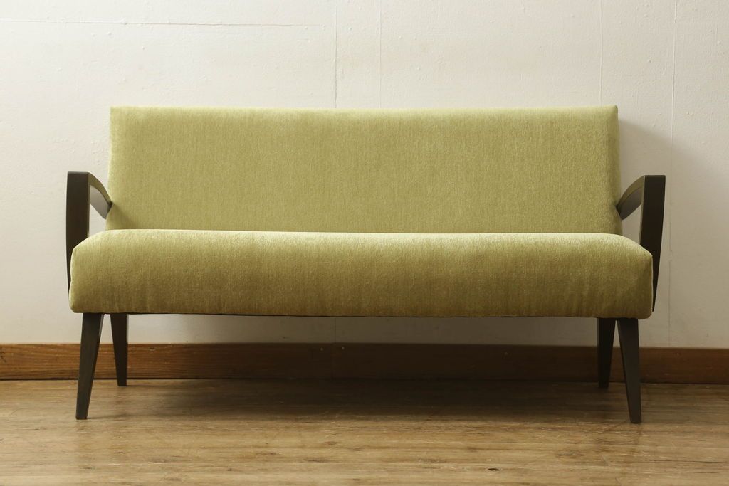ソファ> 2人掛けソファ > ソファをリペア&カスタム!生地を張り替え、座面の硬さと高さを調節。木部は1トーン濃い色味に着色仕上げ。(2.5人掛けソファ、二人掛けソファ、ベンチ)