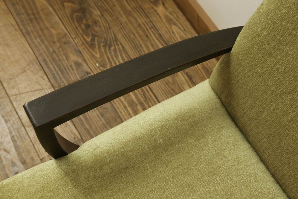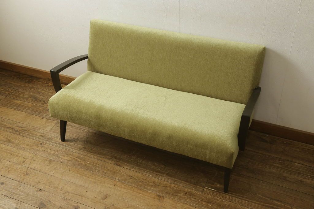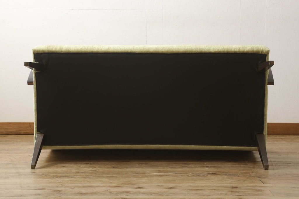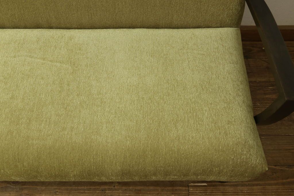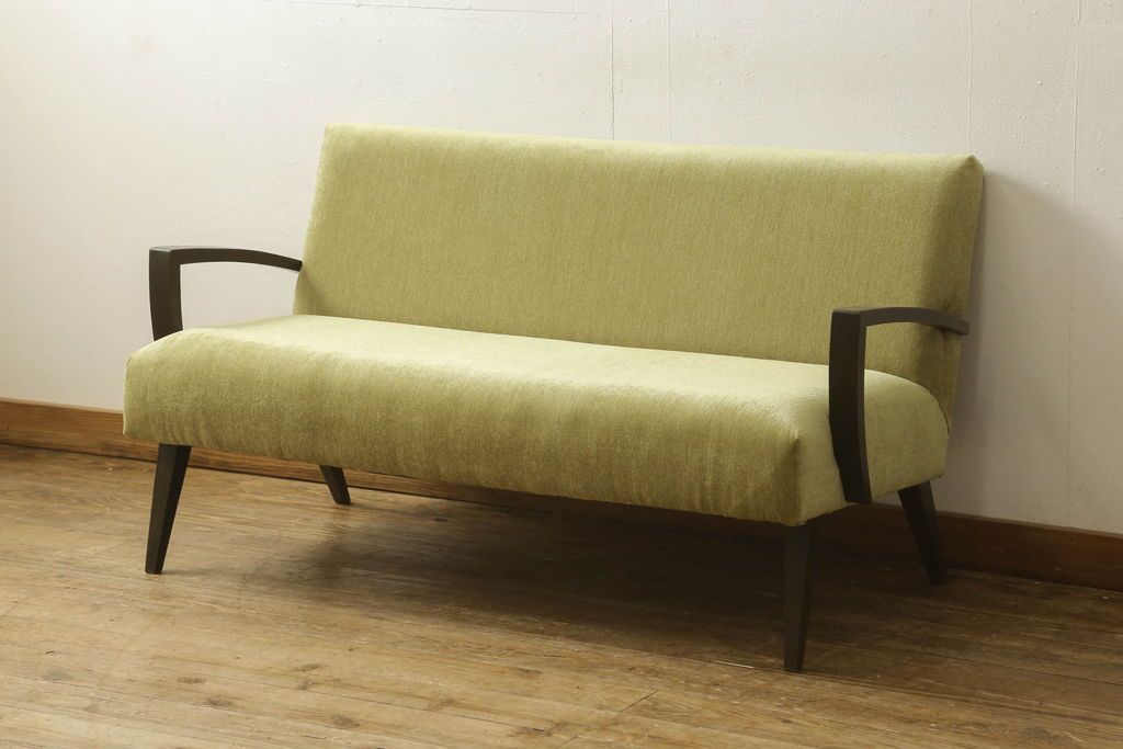 ソファ> 2人掛けソファ > ソファをリペア&カスタム!生地を張り替え、座面の硬さと高さを調節。木部は1トーン濃い色味に着色仕上げ。(2.5人掛けソファ、二人掛けソファ、ベンチ)