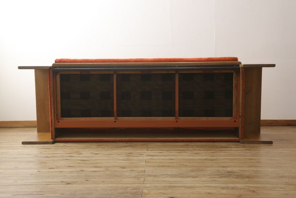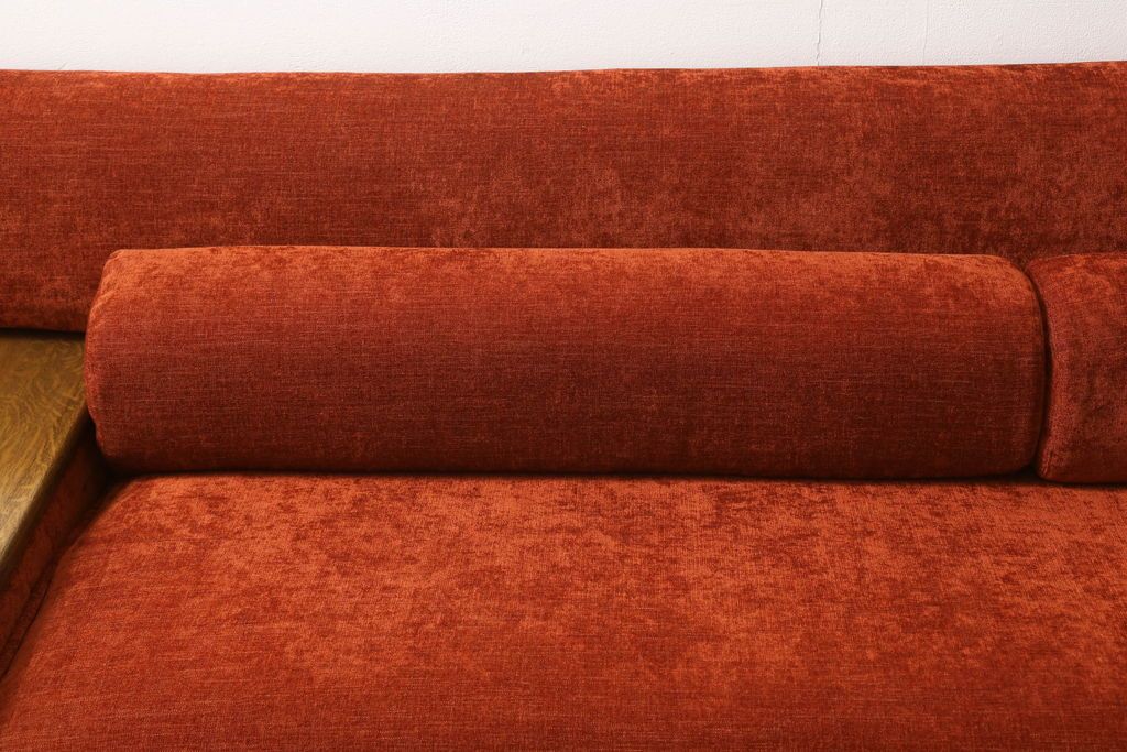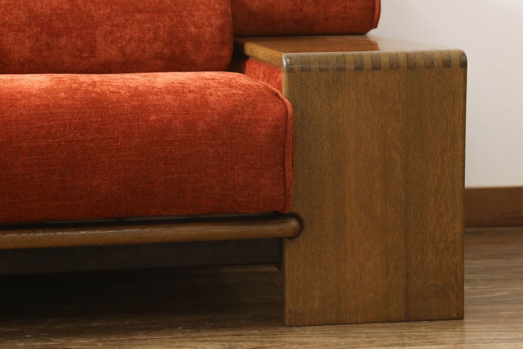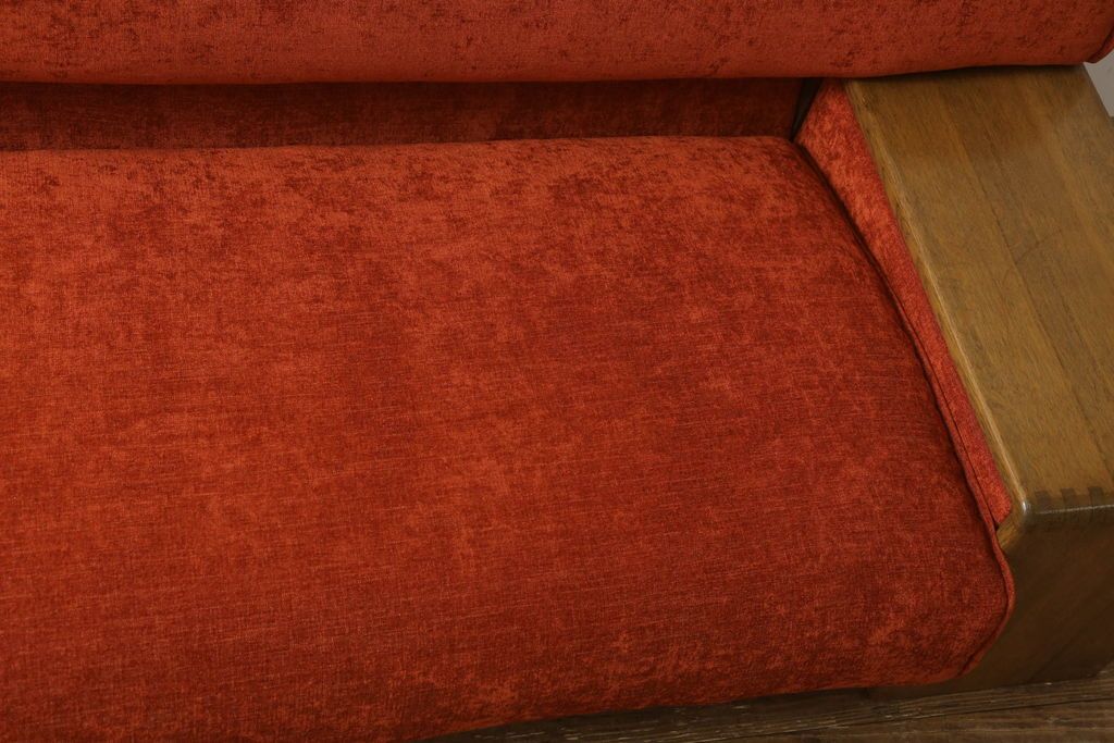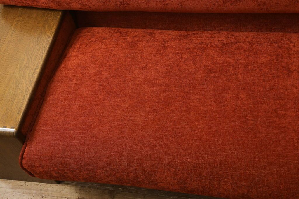 セミオーダー家具実績 > 3人掛けソファをリペア&カスタム!指定の生地に張り替え、座面の厚みを調整。同じ生地でクッションカバーも制作。(3Pソファ、三人掛けソファ、ビンテージ)