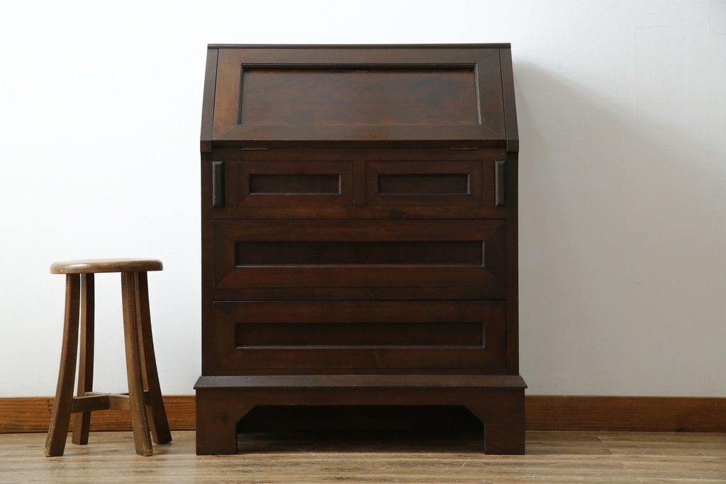 デスク> ワークデスク > 和製ビンテージ 松本民芸家具 高山式 スタイリッシュなデザインが美しいライティングビューロー(机、ワークデスク、引き出し、サイドチェスト、在宅用、在宅ワーク用、ヴィンテージ)(R-074856)