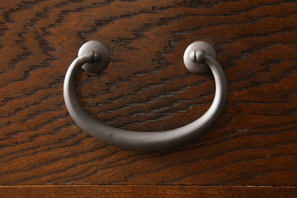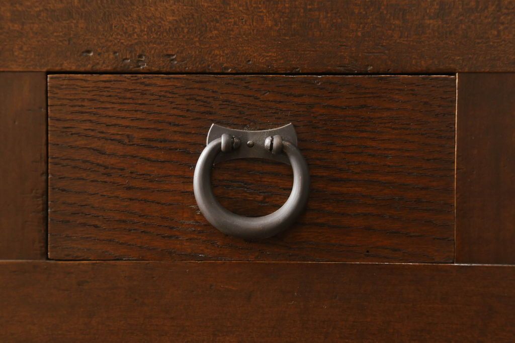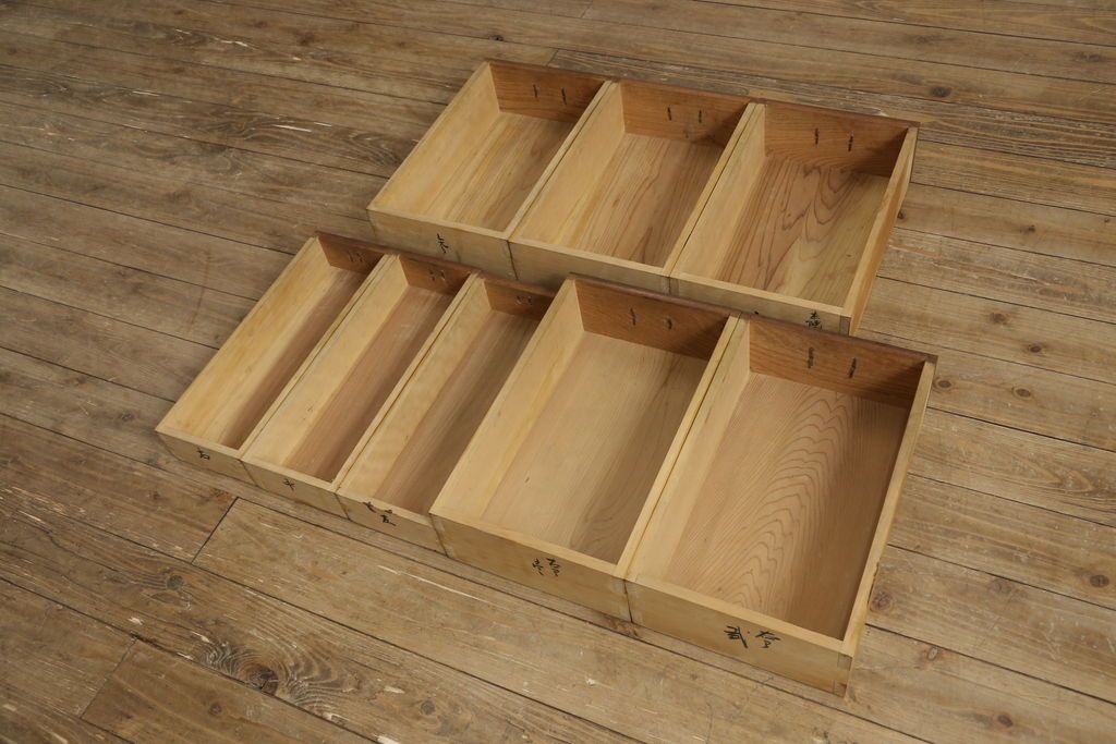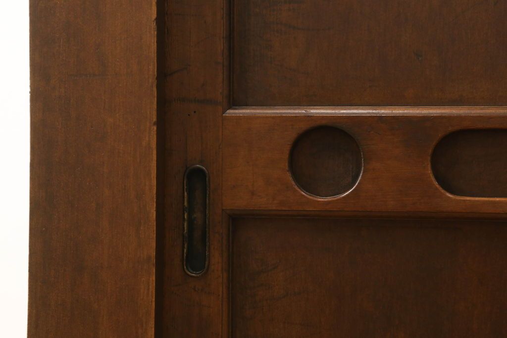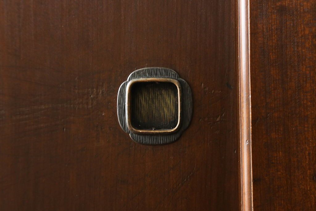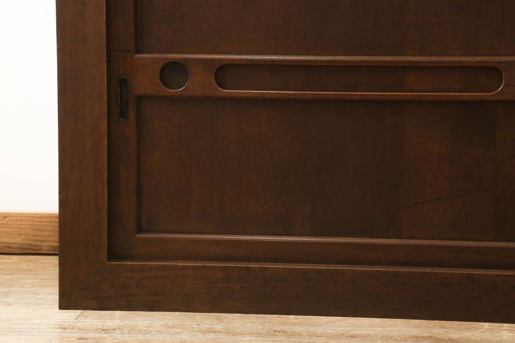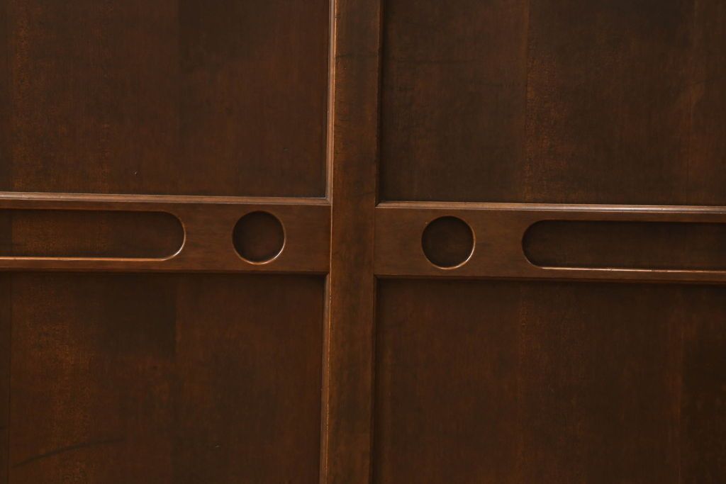 重ね水屋箪笥をリペア&カスタム!上段右上の網をクリアガラスに変更。全ての棚板を交換し、位置を調整。全体をご希望の色味に着色仕上げ。(六尺、食器棚、戸棚、キャビネット、収納棚)