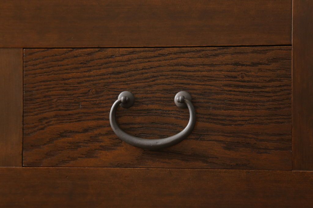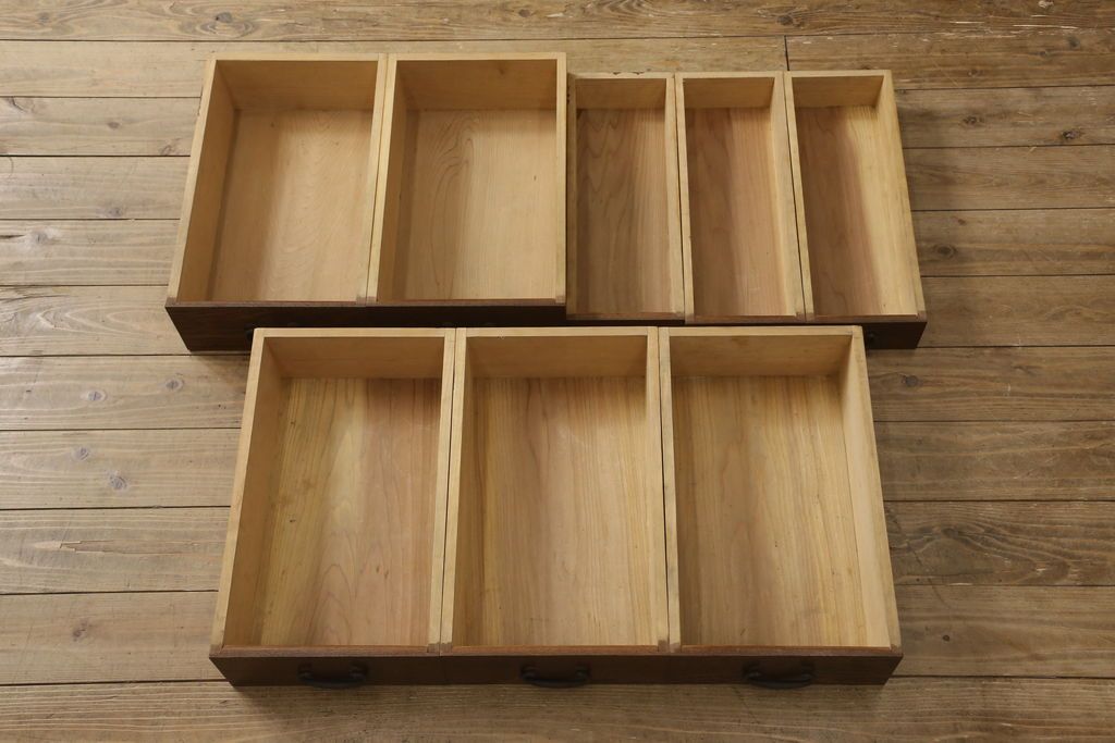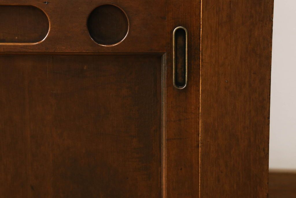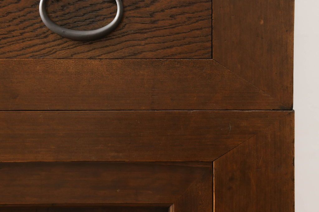 ラフジュ工房> 和箪笥 > 重ね水屋箪笥をリペア&カスタム!上段右上の網をクリアガラスに変更。全ての棚板を交換し、位置を調整。全体をご希望の色味に着色仕上げ。(六尺、食器棚、戸棚、キャビネット、収納棚)