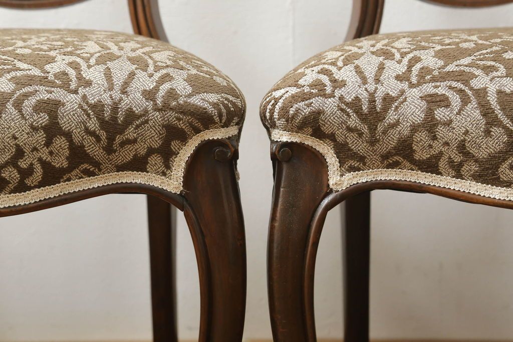 バルーンバックチェアをリペア&カスタム!座面の生地を張替え、木部はは1トーン落ち着いた色味に着色仕上げ。(ダイニングチェア、椅子)