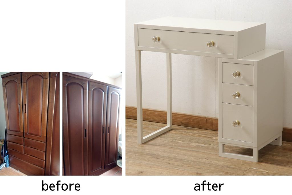 お客様持ち込みの婚礼家具をデスクドレッサーへリメイク