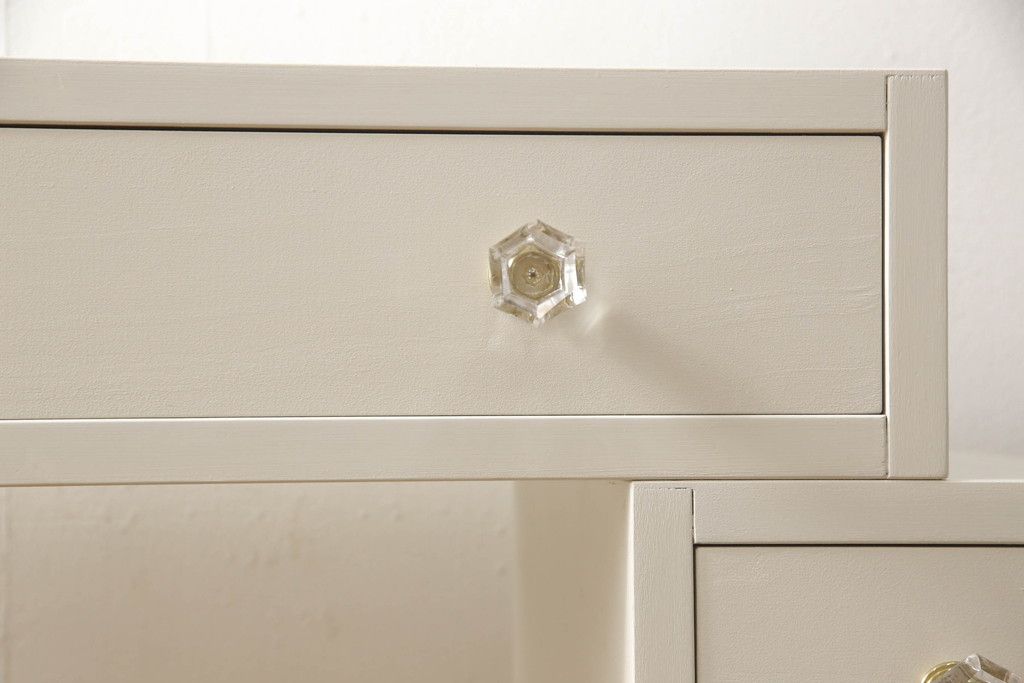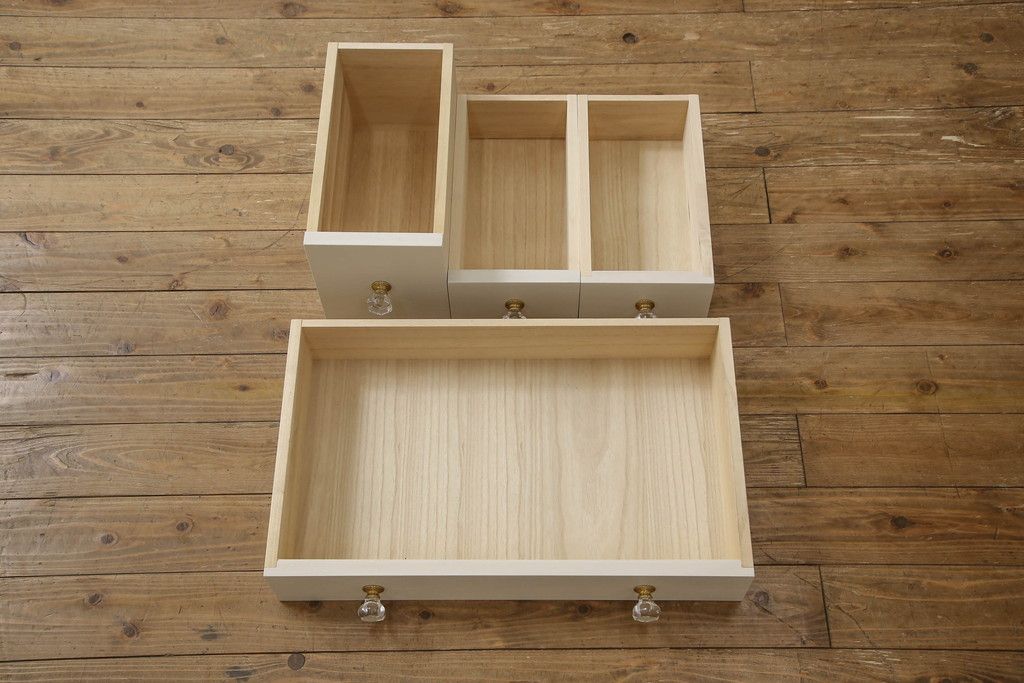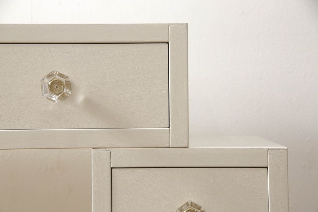 婚礼箪笥をドレッサーにリメイク!ご希望のサイズにリサイズし、脚をとつまみを取り付け。アンティークホワイトにペイント仕上げ。