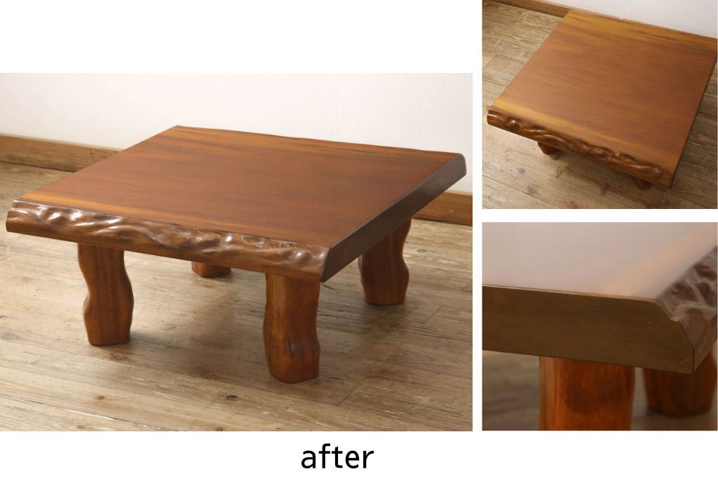 座卓を希望の大きさにリメイク!正方形の天板になるようリサイズし、脚を移設。切断面は本体の色に合わせて着色仕上げ。