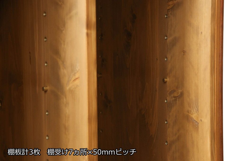 (横方向を3等分し仕切り板を取り付け各1枚ずつ棚板を取り付け)