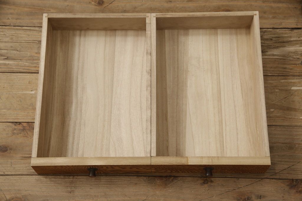 ・引き出しや底板を取り払い内部側面の引き出しレール部分を埋木して修正