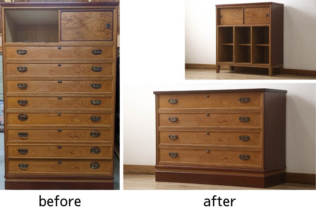 お客様持ち込みの婚礼家具を上下に分けてリメイク