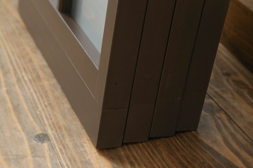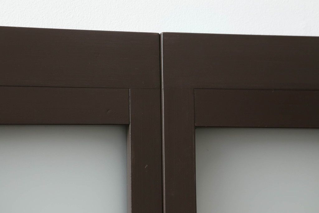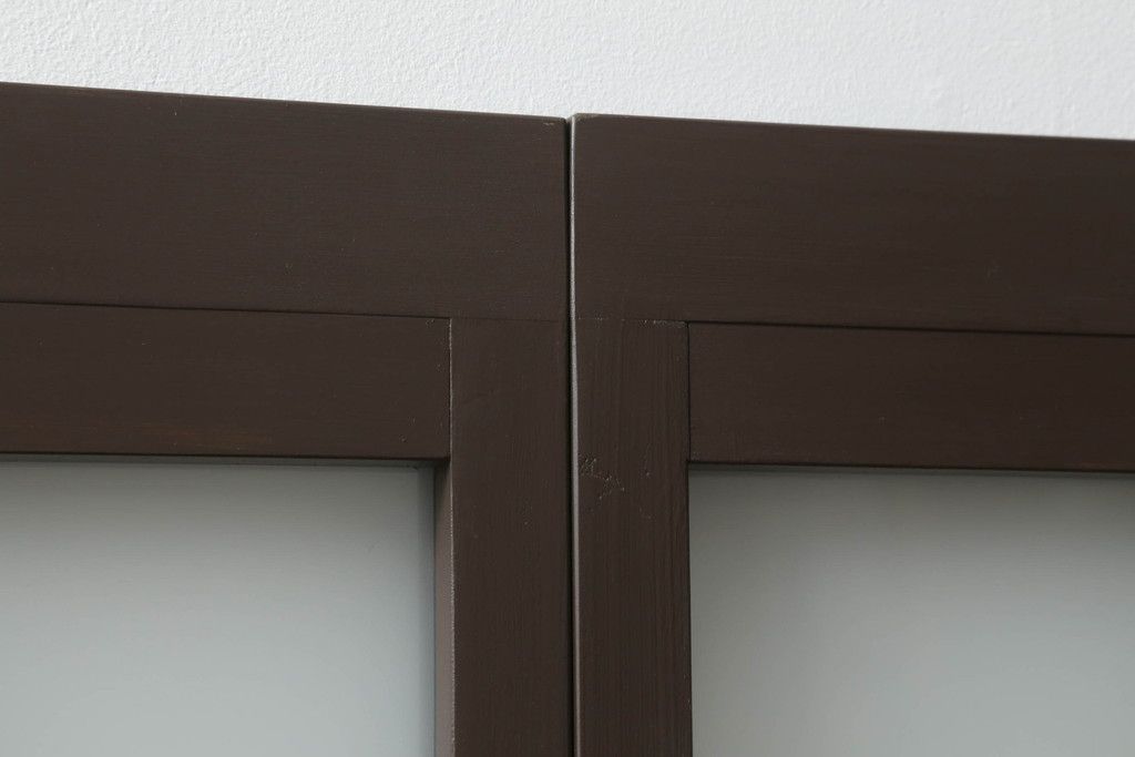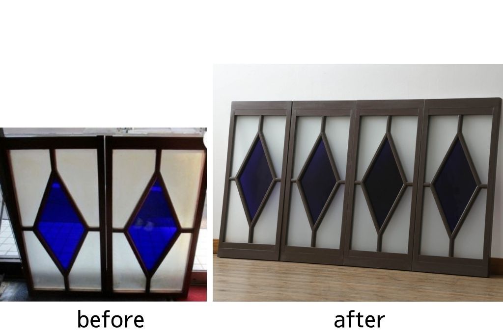 ガラス窓の大きさをリメイク!高さと幅をリサイズし、すりガラス部分を新しいものに交換。ココアブラウンにペイント仕上げ。