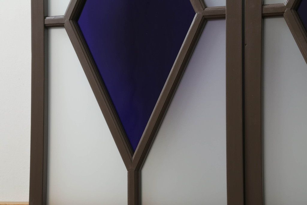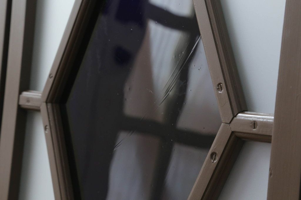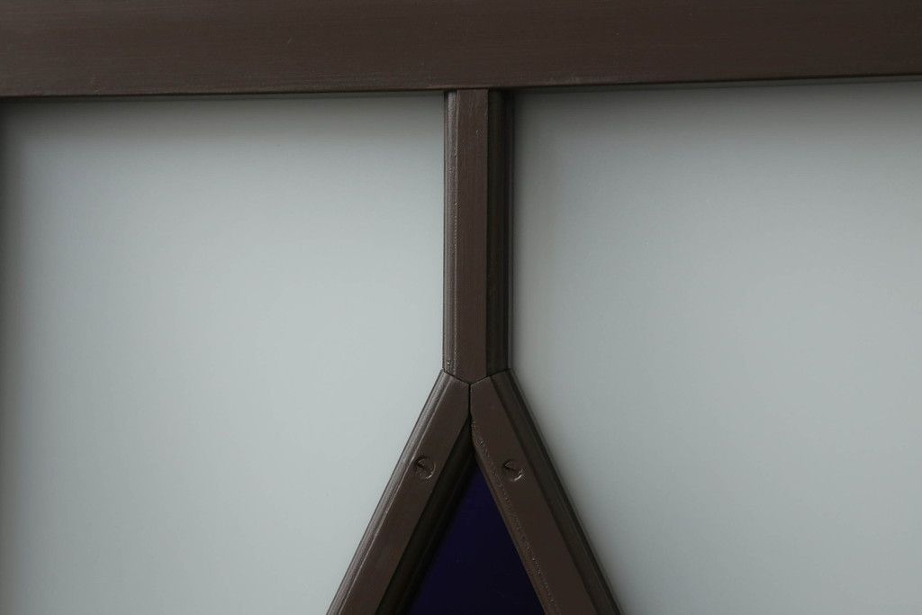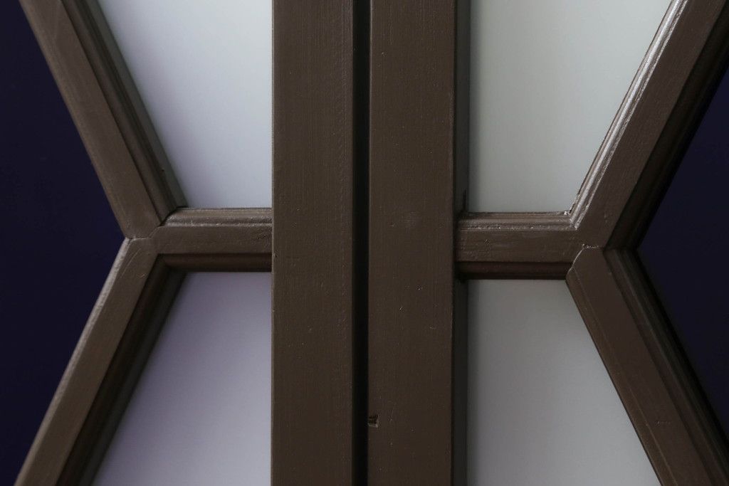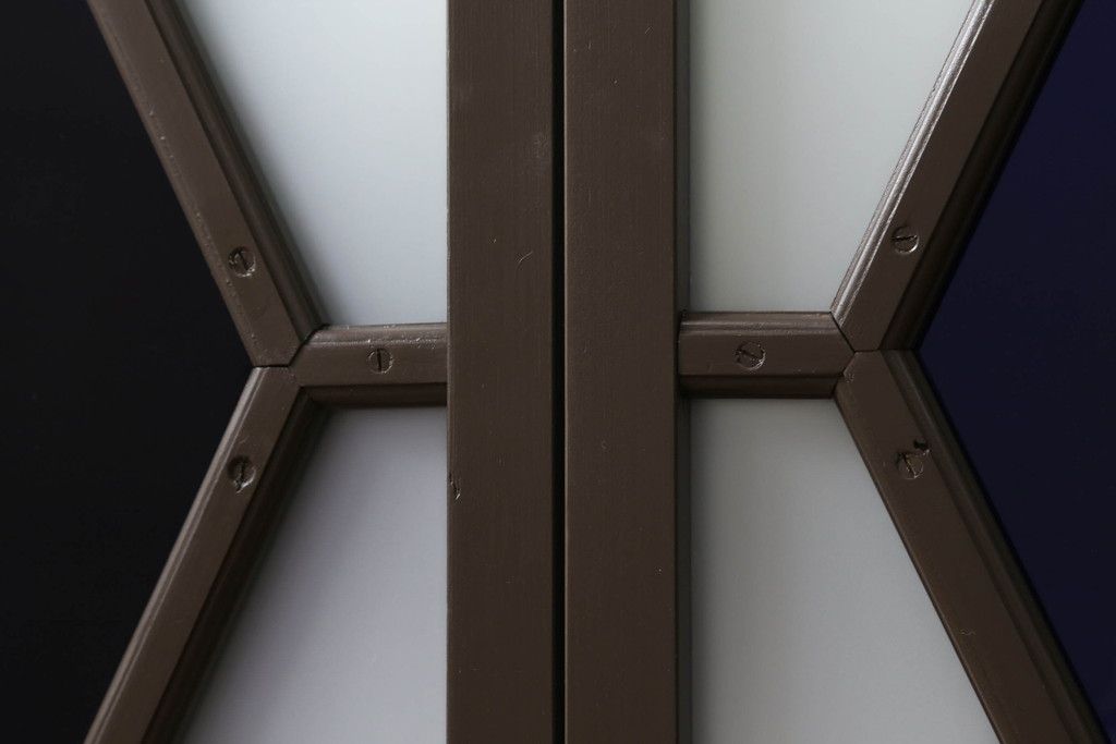 ガラス窓の大きさをリメイク!高さと幅をリサイズし、すりガラス部分を新しいものに交換。ココアブラウンにペイント仕上げ。