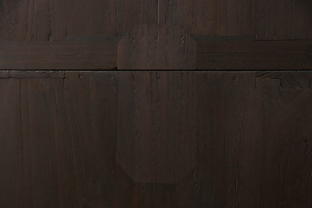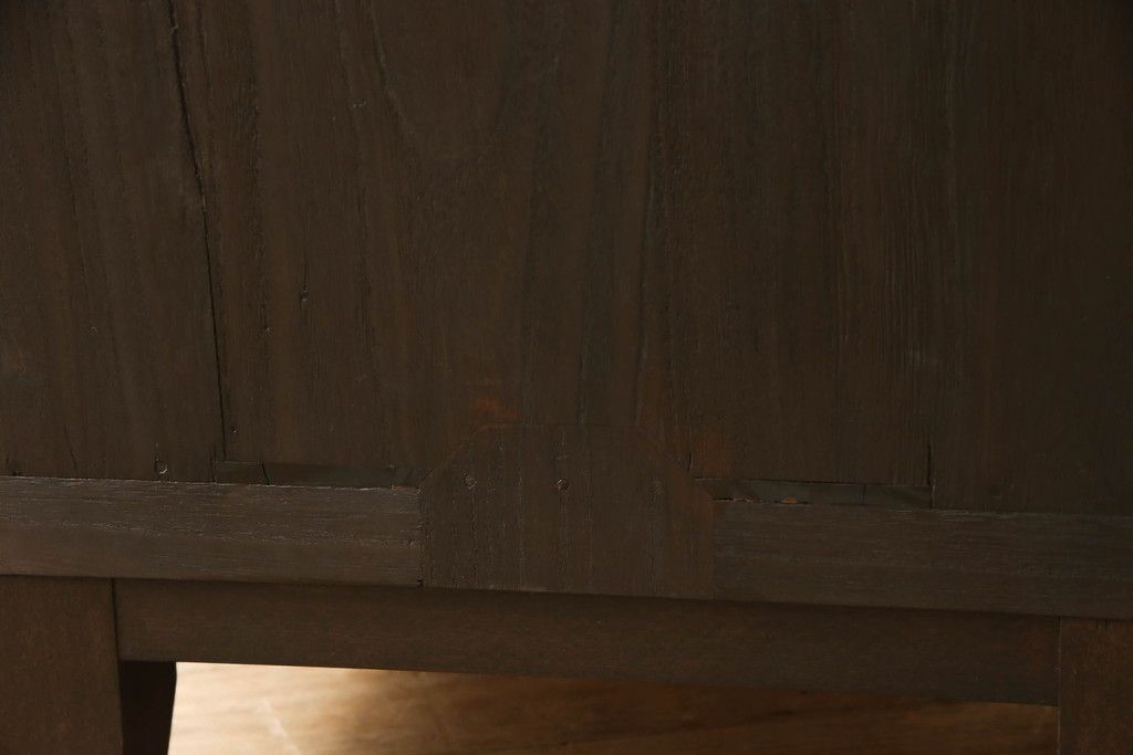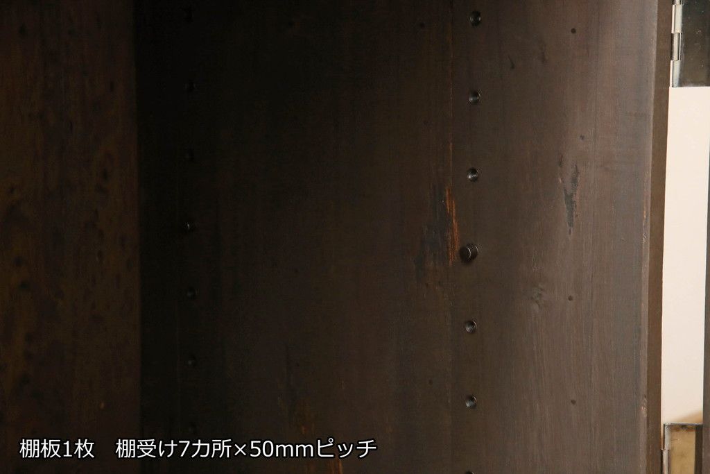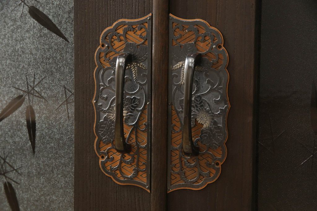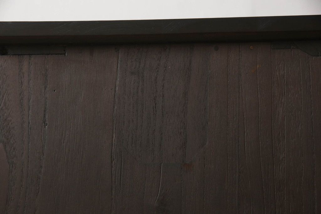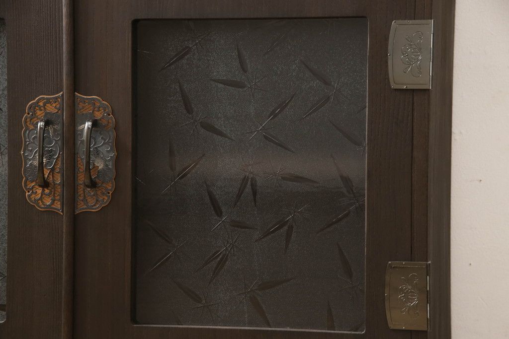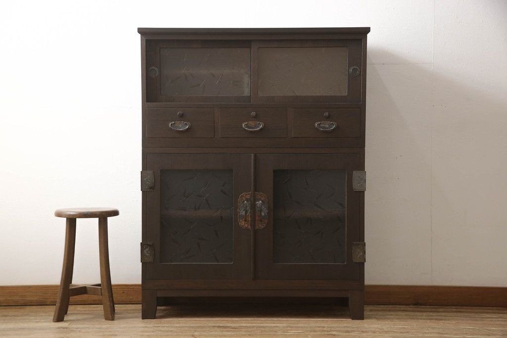 桐箪笥をチェストにリメイク!引き戸、開き戸にはそれぞれガラスをはめ込み、ヒノキ無垢材の天板と木製脚の取り付け。既存の衣装盆を撤去し、新たに棚板を製作。チェスナット系のステイン塗料仕上げ。