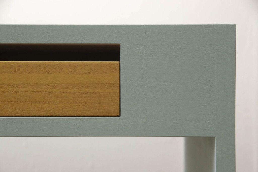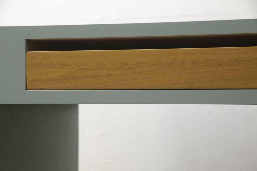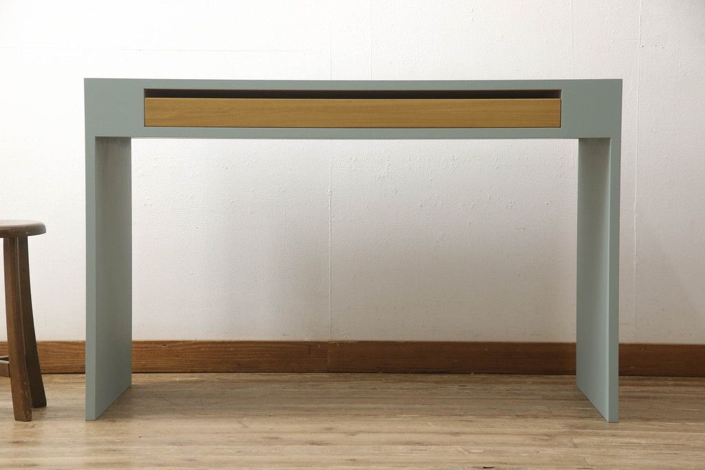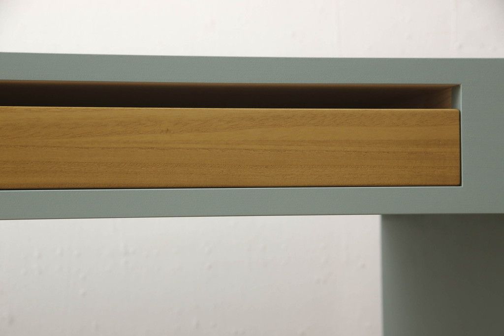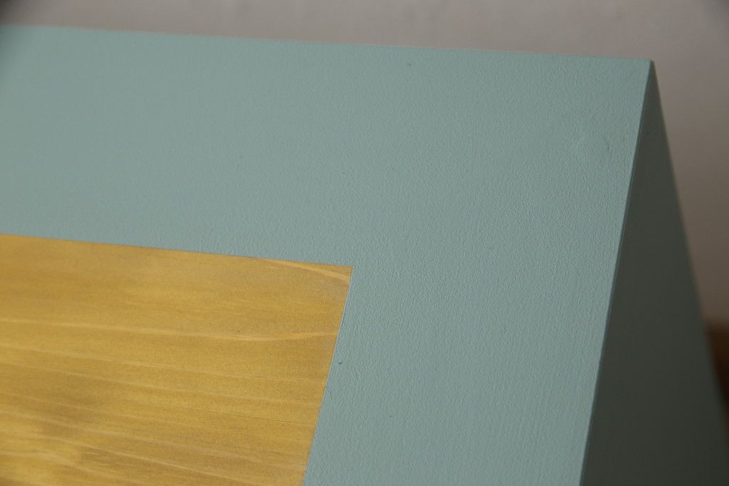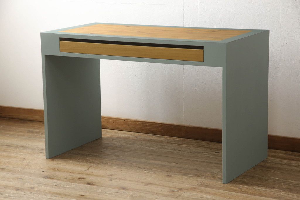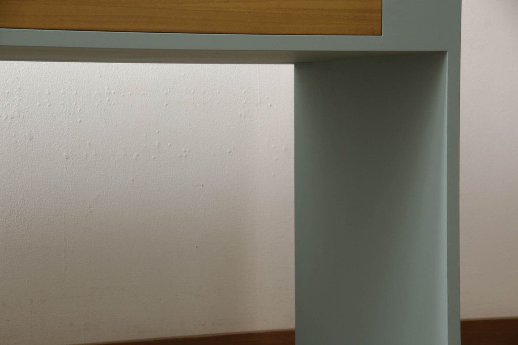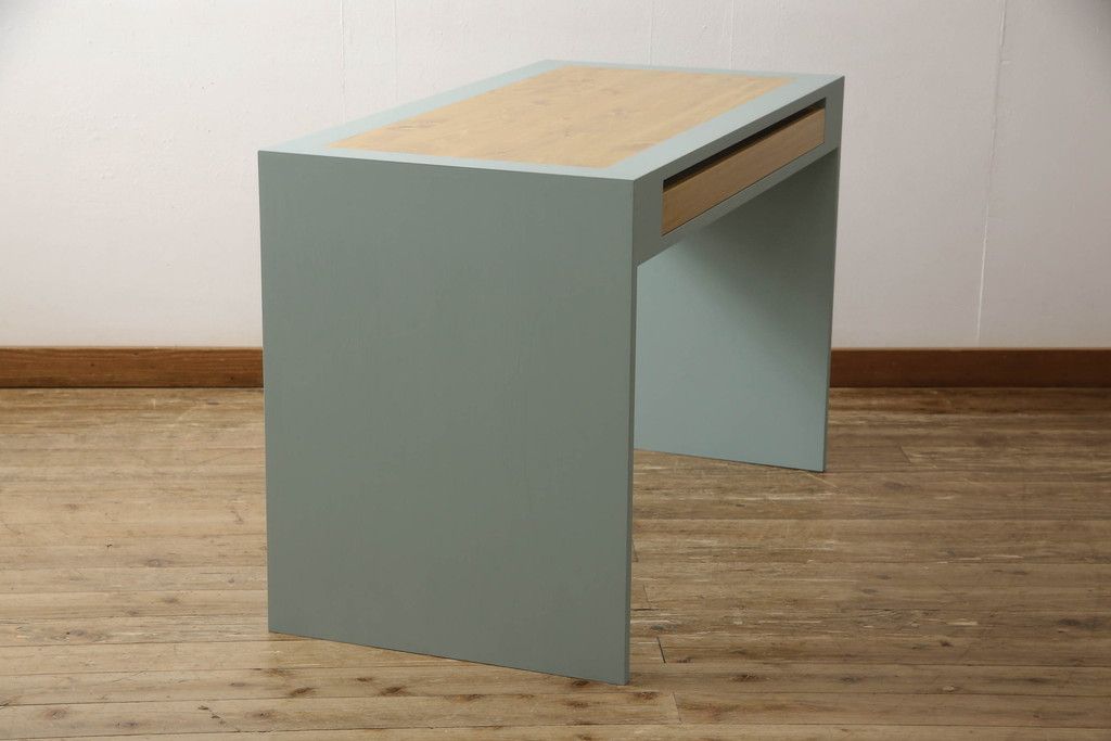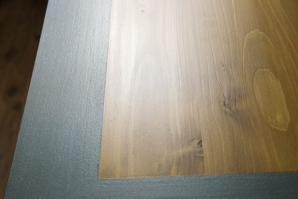 ・天板:木目が見える明るい茶色の着色と水色のペイントでツートーンに着色