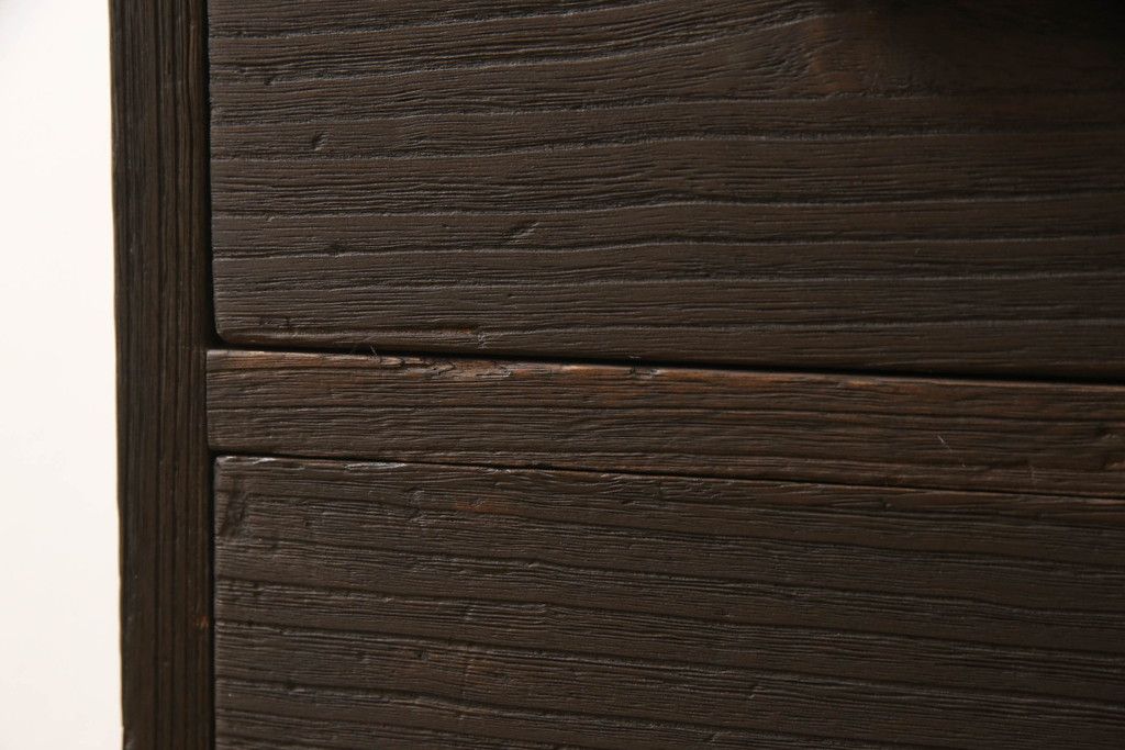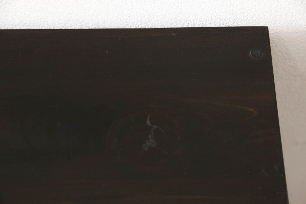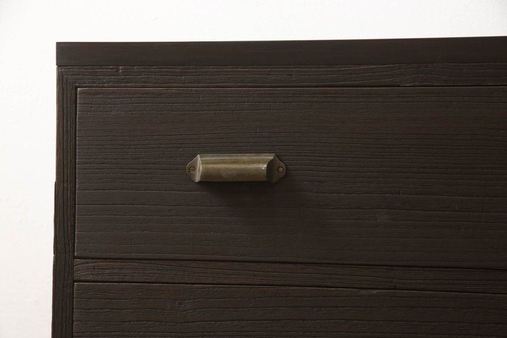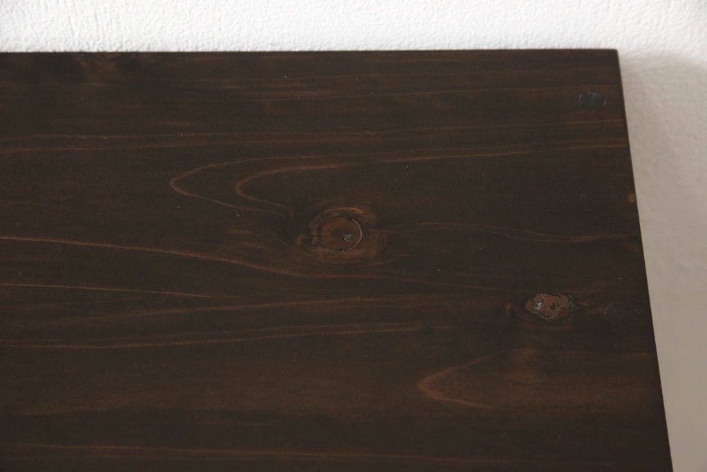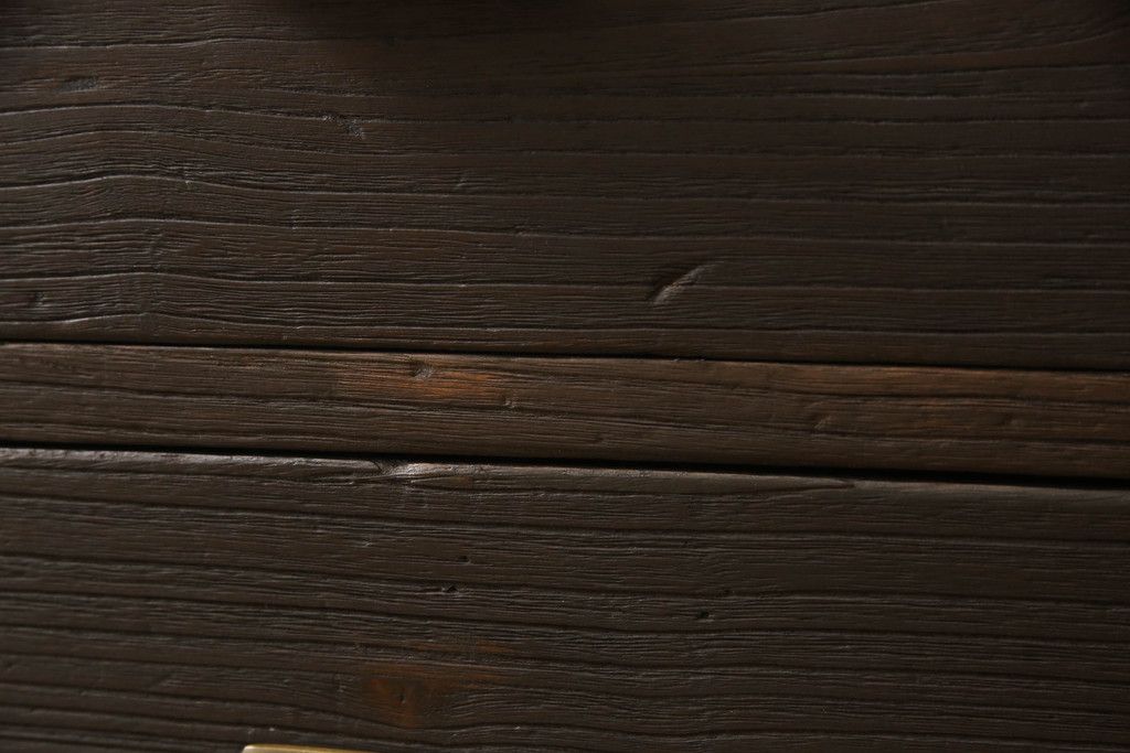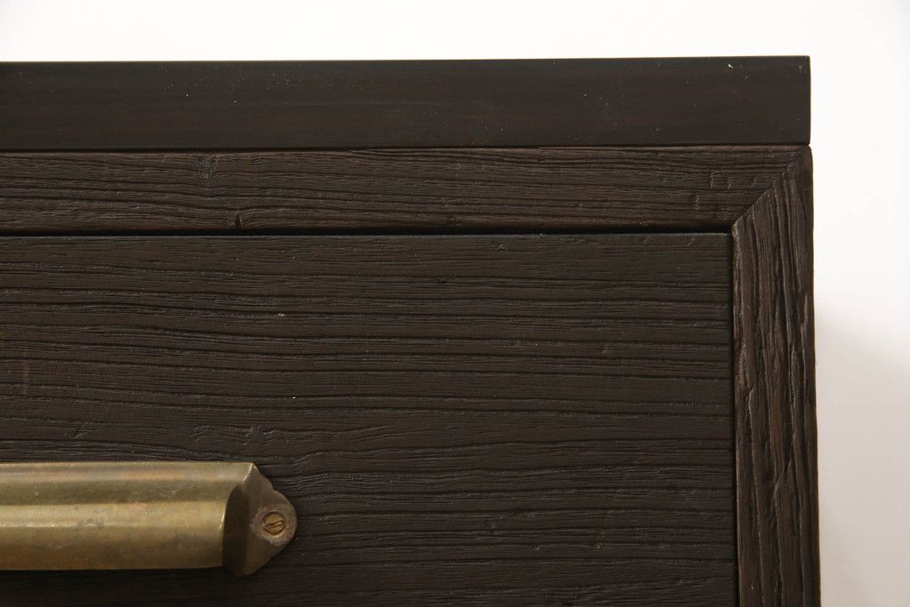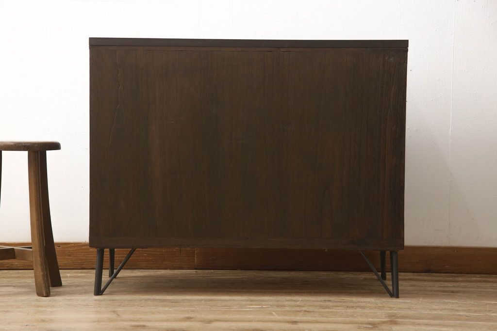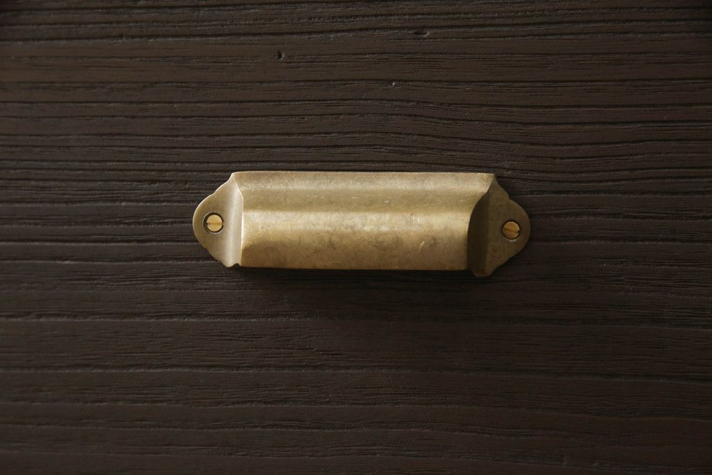 桐箪笥の中段・下段をそれぞれチェストにリメイク!天板と鉄脚を取り付け、横並びで使えるよう高さを調整。取っ手を交換し、濃茶で着色仕上げ。